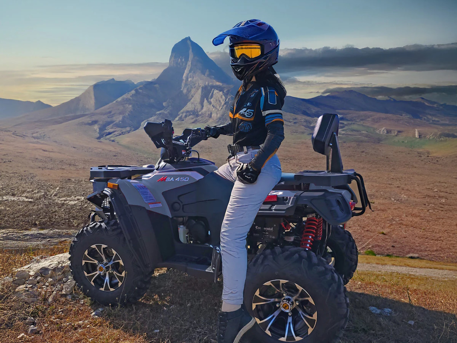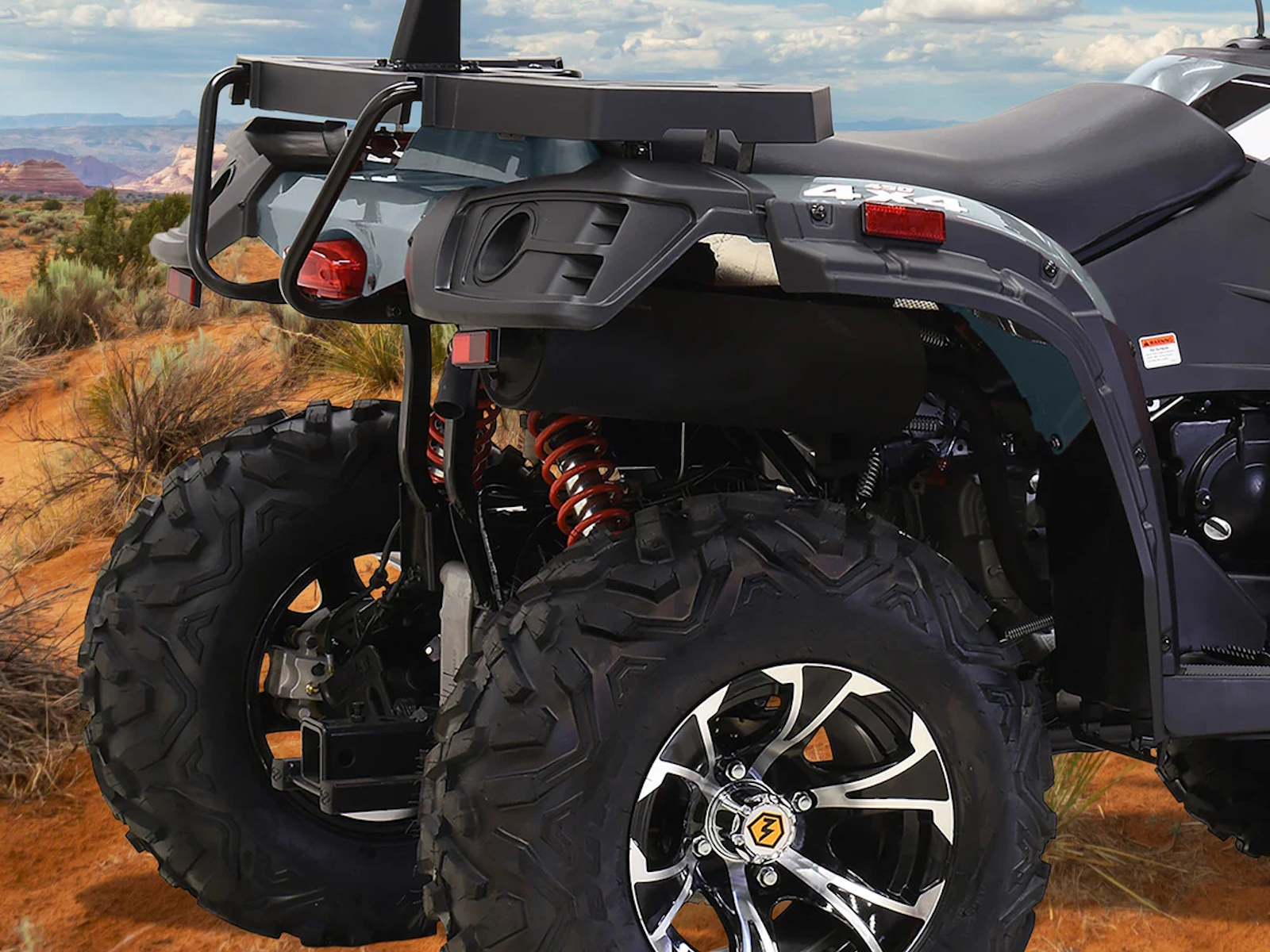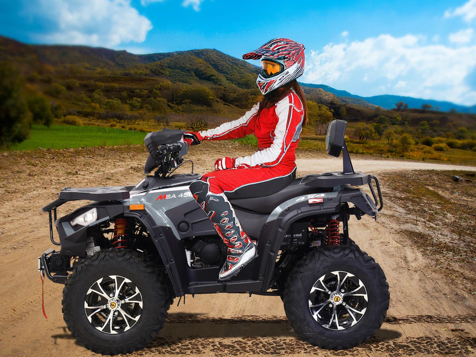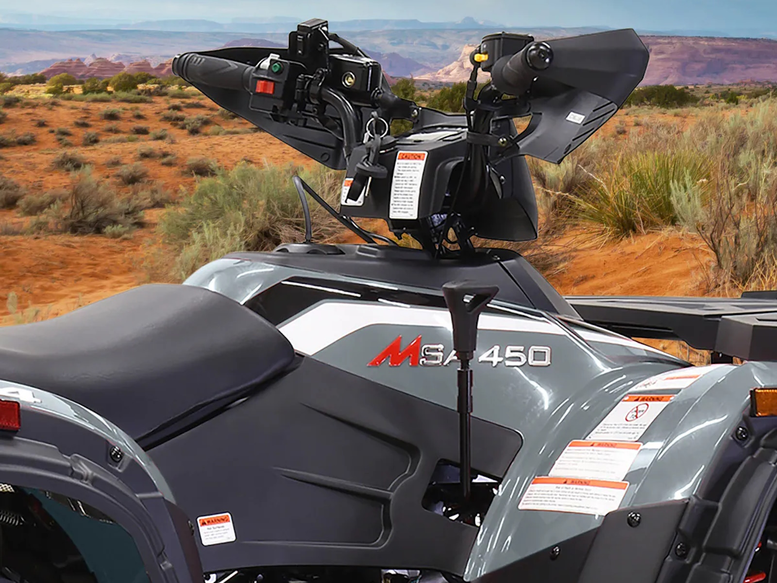 Tackle your to-do list with the Massimo MSA 450F, a mid-size 4x4 ATV that delivers the perfect blend of power and value.1 It’s built around a durable 352cc, 25 HP fuel-injected engine that provides reliable performance for work or play.2 With On-Demand 4WD, 11 inches of ground clearance, and rugged 25-inch tires, you can confidently navigate challenging terrain.3 This ATV comes ready to work with a 3,000lb winch, a comfortable passenger backrest, durable front and rear racks, and a protective front bumper, offering a feature-packed machine at an unbeatable price.