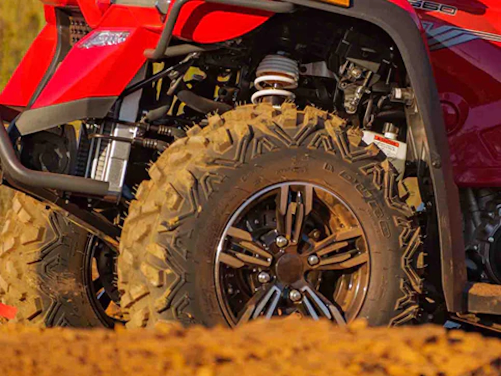 Conquer terrain with 25in All-Terrain Tires & 10.5in Ground Clearance.