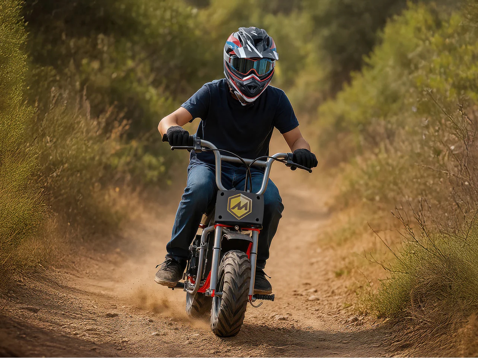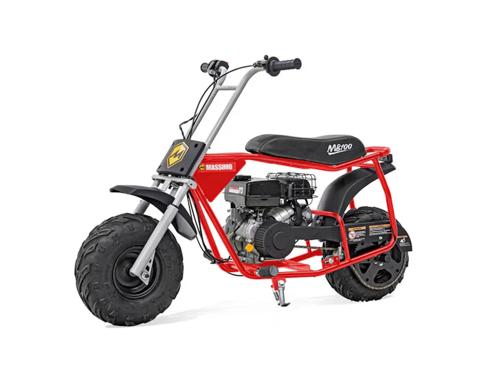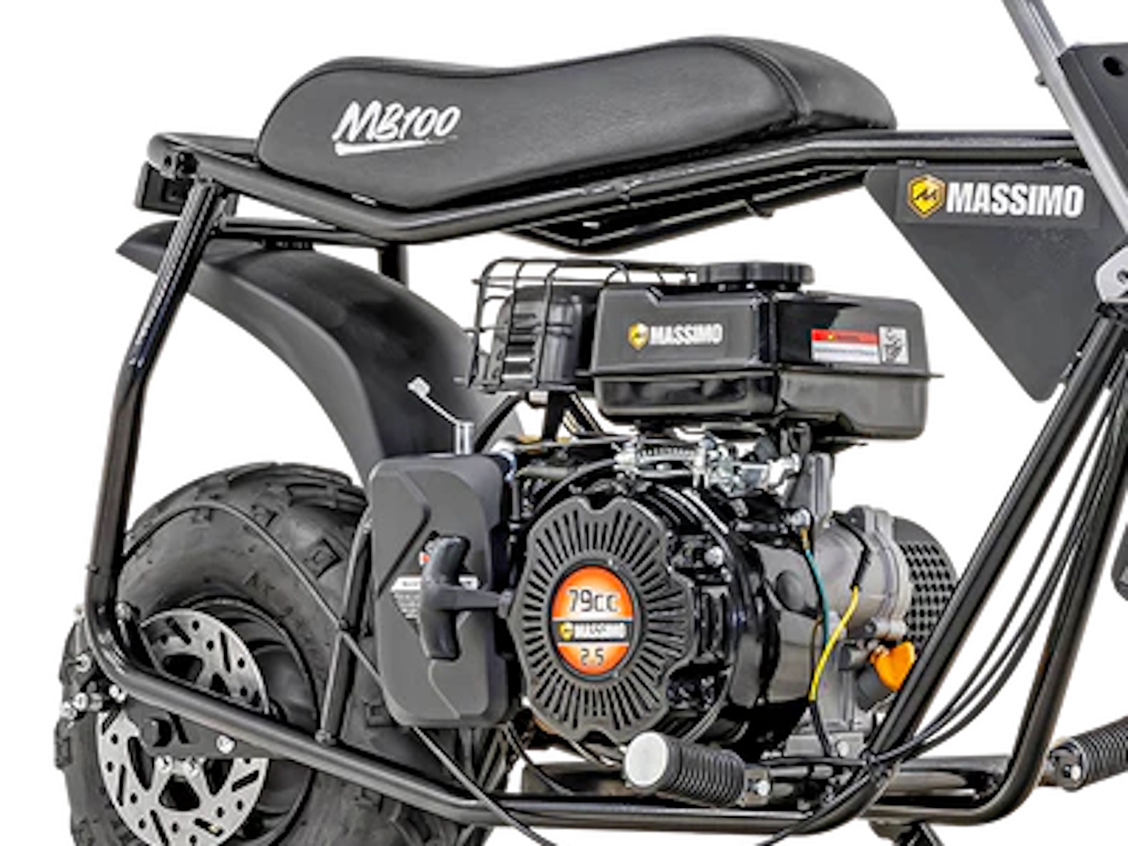 Experience the pure fun of off-road riding with the Massimo MB100 Mini Bike. Its reliable 79cc, 2.5 HP four-stroke engine provides manageable power for new and young riders, reaching exciting speeds of up to 15 mph. The simple automatic transmission and pull-start ignition make it incredibly easy to operate, just hop on and go. Built with a rugged frame, a low 24-inch seat height, and aggressive all-terrain tires, the MB100 is a compact and lightweight machine that delivers a thrilling and confidence-inspiring ride on backyard trails and dirt paths.