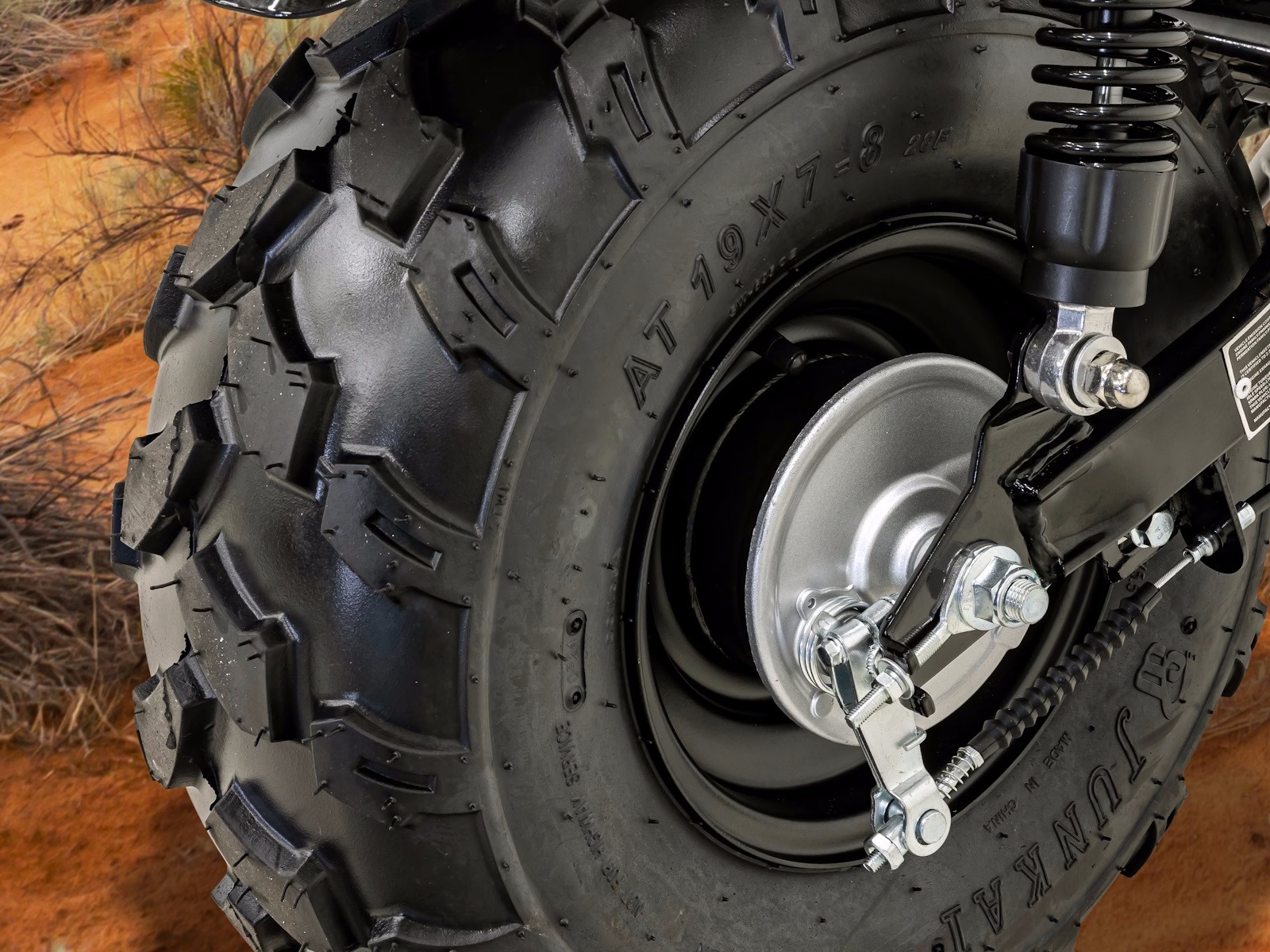 Conquer terrain with 19in All-Terrain Tires & 7.2in Ground Clearance.