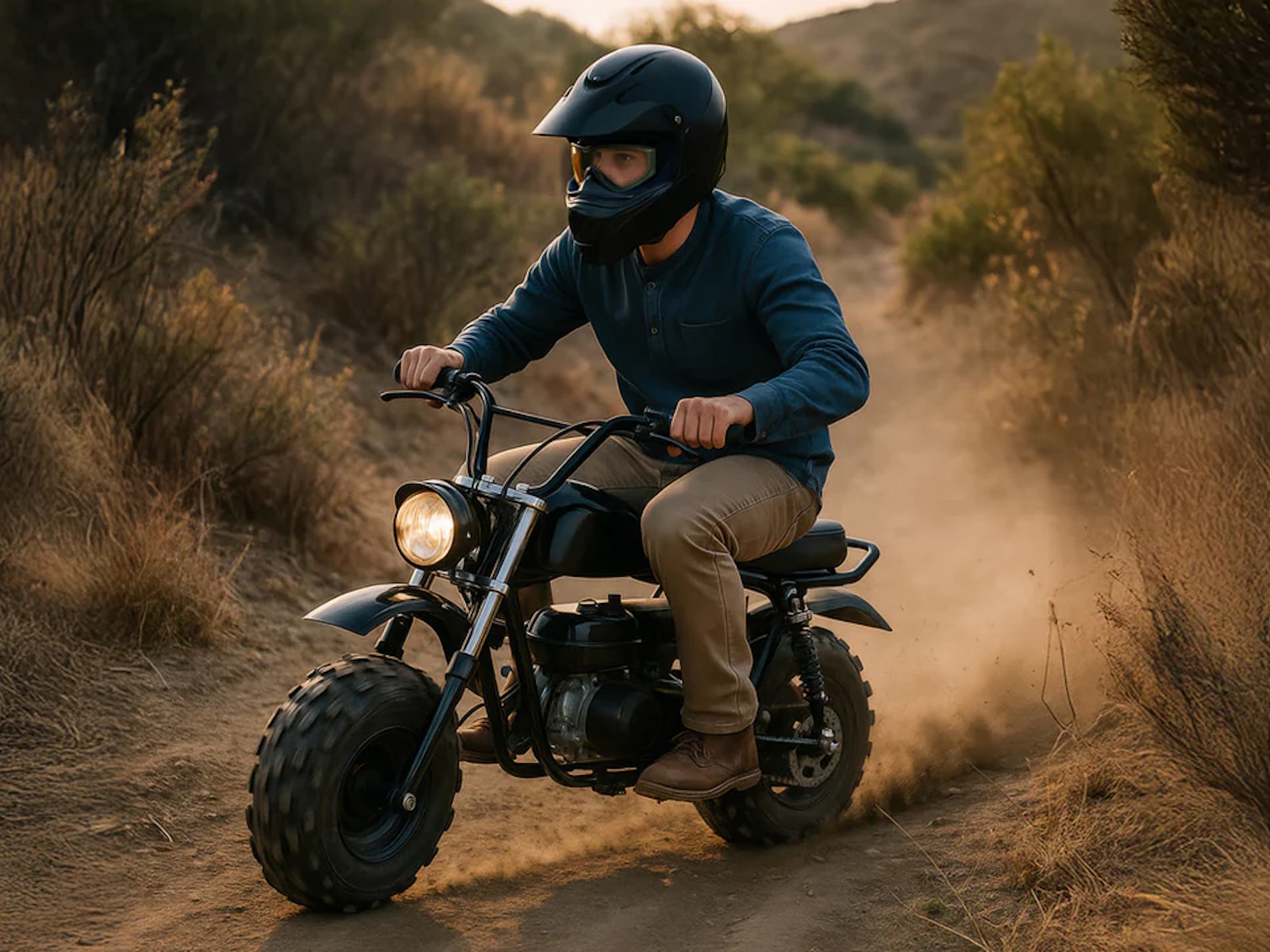 Get ready for off-road fun with the Massimo 200S Mini Bike, a modern classic built for adventure. It’s powered by a rugged and reliable 196cc, 7.5 HP engine and features a smooth dual-shock rear suspension for a comfortable ride on tough trails. This mini bike boasts super-wide 19-inch all-terrain tires that provide excellent grip and stability on dirt, grass, and pavement. With its low seat height, easy pull-start, and a faux gas tank for convenient storage, the 200S is the perfect choice for riders seeking a simple, durable, and thrilling off-road experience.