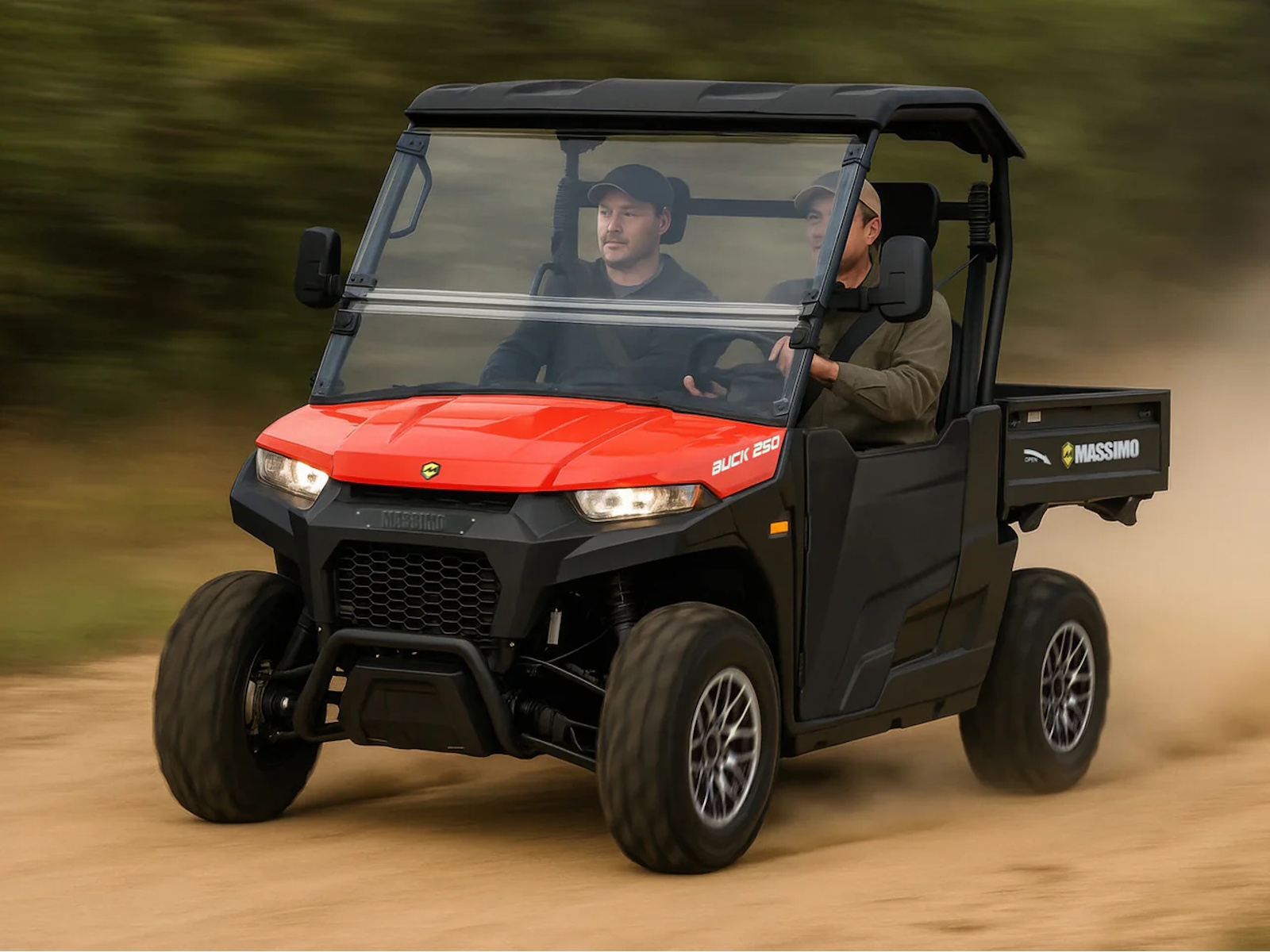 The Massimo Buck 250 is the perfect compact UTV for managing your property and enjoying light-duty adventures. Powered by a reliable and efficient 177cc EFI engine, it provides consistent, easy starting and plenty of pep for daily chores.1 Its agile and compact frame allows it to navigate tight spaces where larger machines can't go. Standard features like a hard top roof, a folding windshield, and a versatile dumping cargo bed that holds over 400 lbs make the Buck 250 an unbeatable value and the ultimate tool for your land.