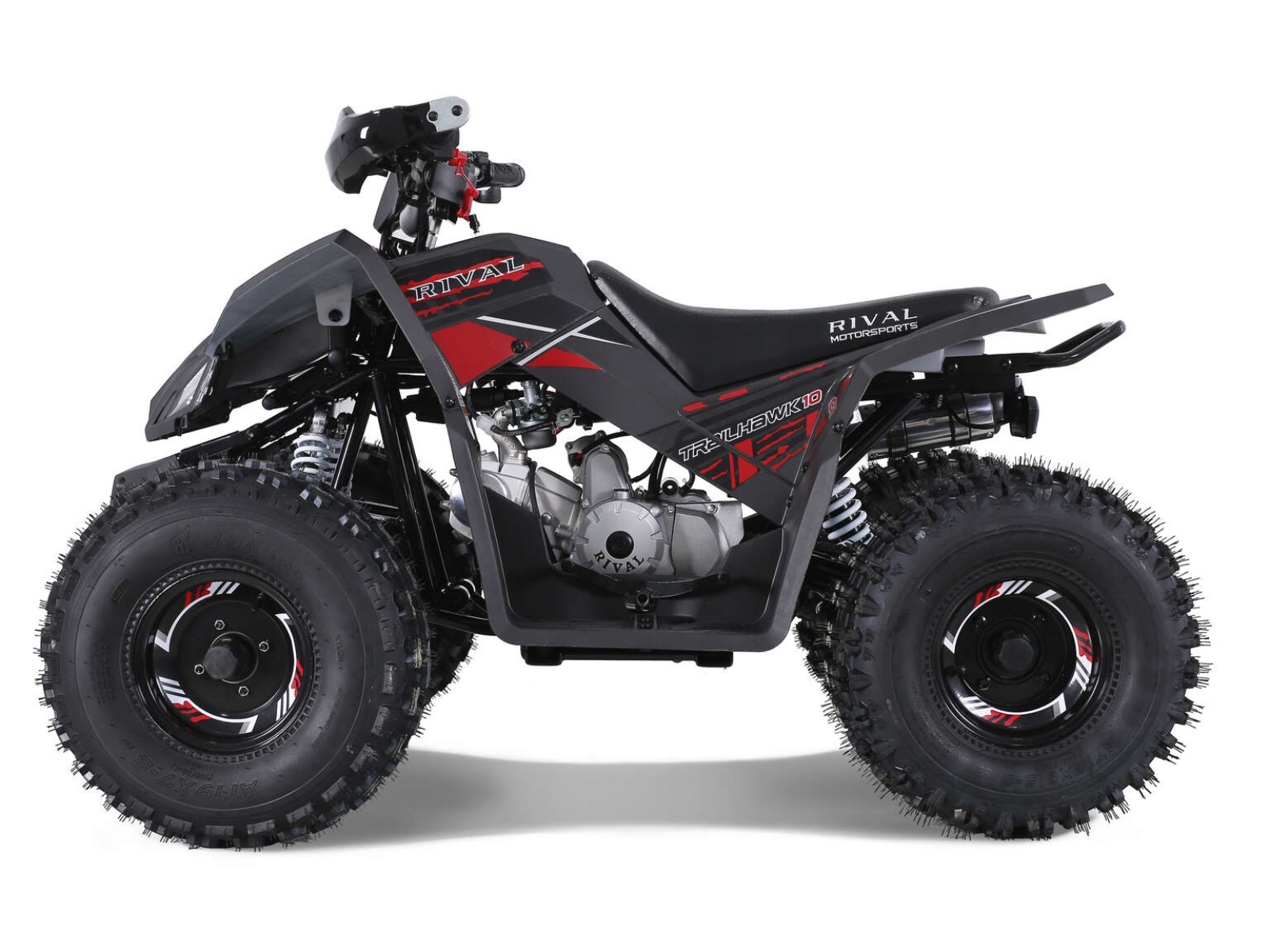 The Trailhawk 10 is designed for action and performance. The Trailhawk 10 is sized for a more experienced youth rider aged 10 and up. While still fitted with our top notch safety features such as the throttle limiter and remote engine shut off, the rugged and well-designed specifically for smaller hands. The convenience of the electric start engine and automatic transmission that also features reverse, provides action packed, go anywhere capabilities for young riders. From performance to style, it's no wonder the Trailhawk 10 has become one of our most popular and sought after off road vehicles.