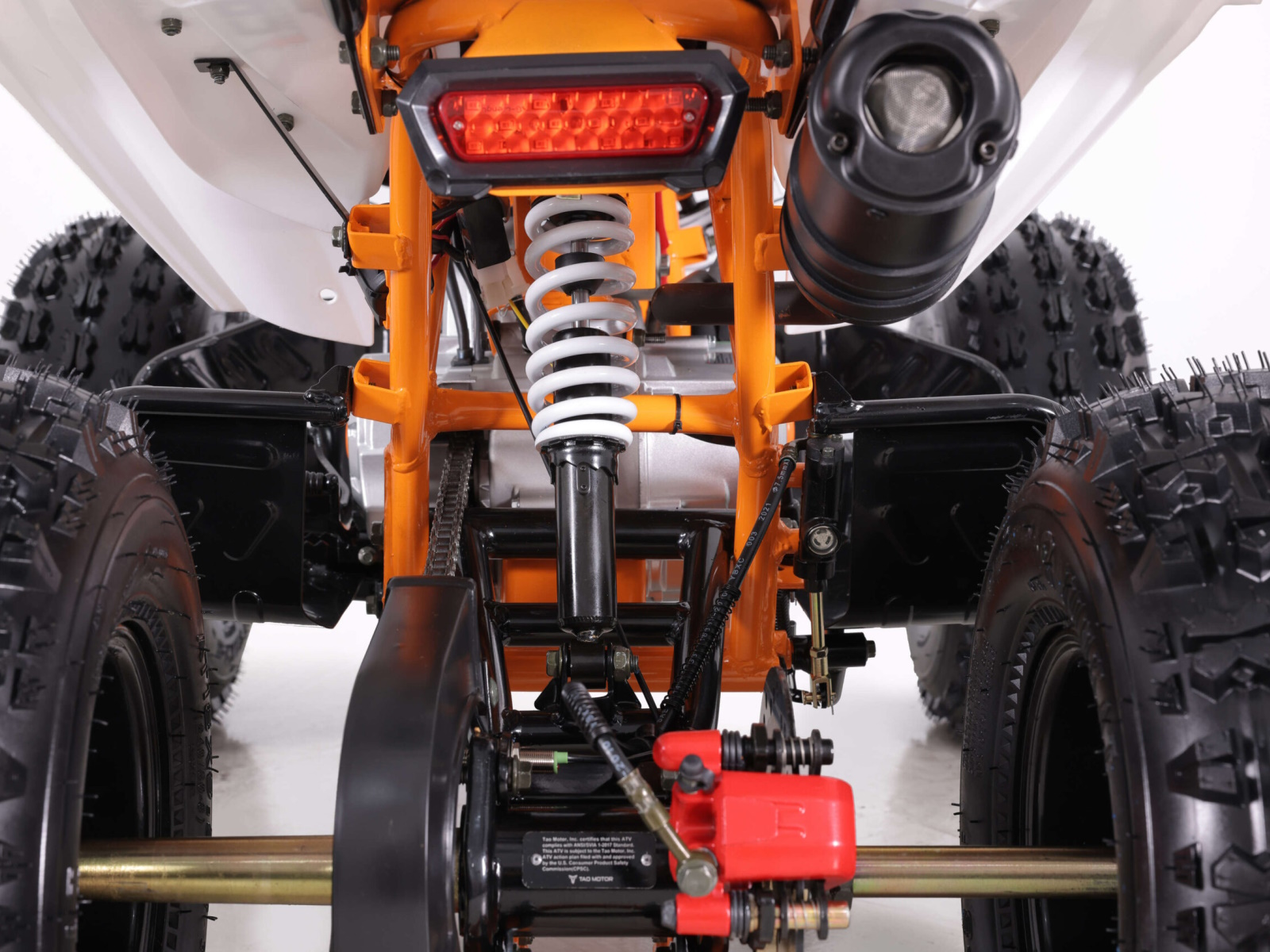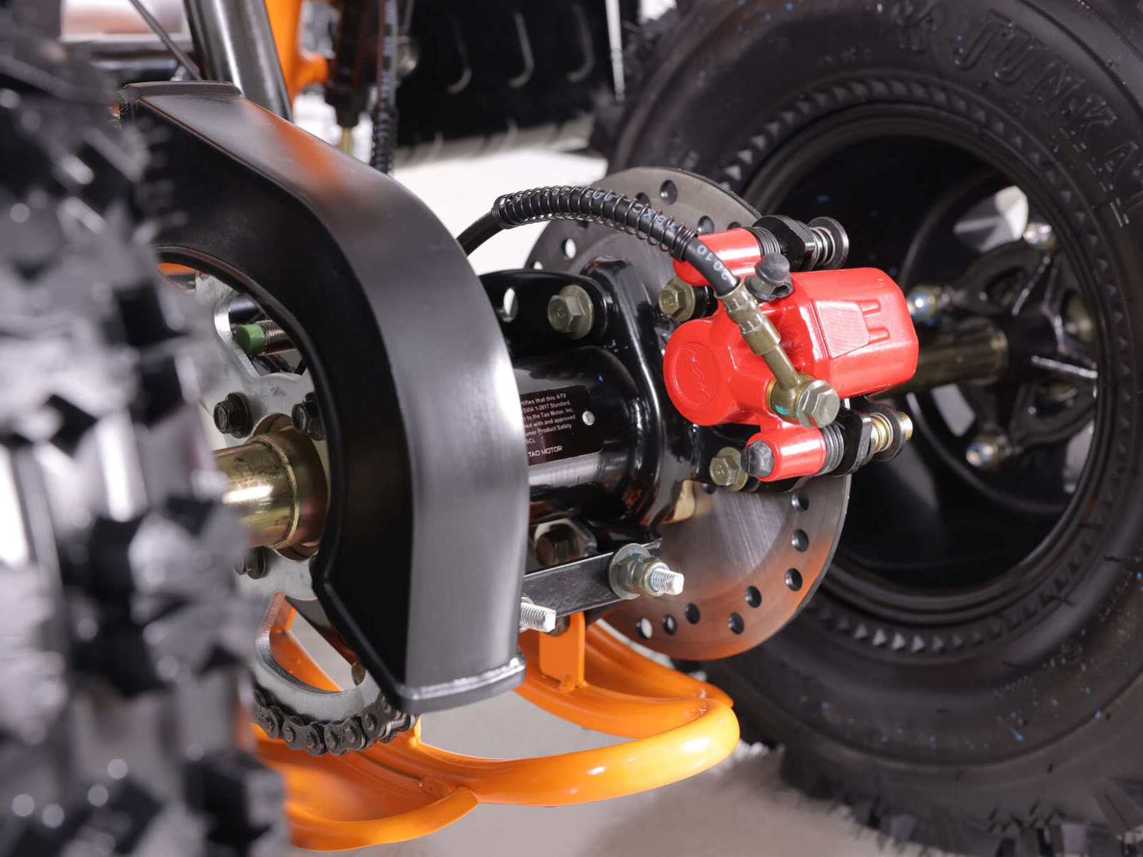- Powder coated red rear brake caliper