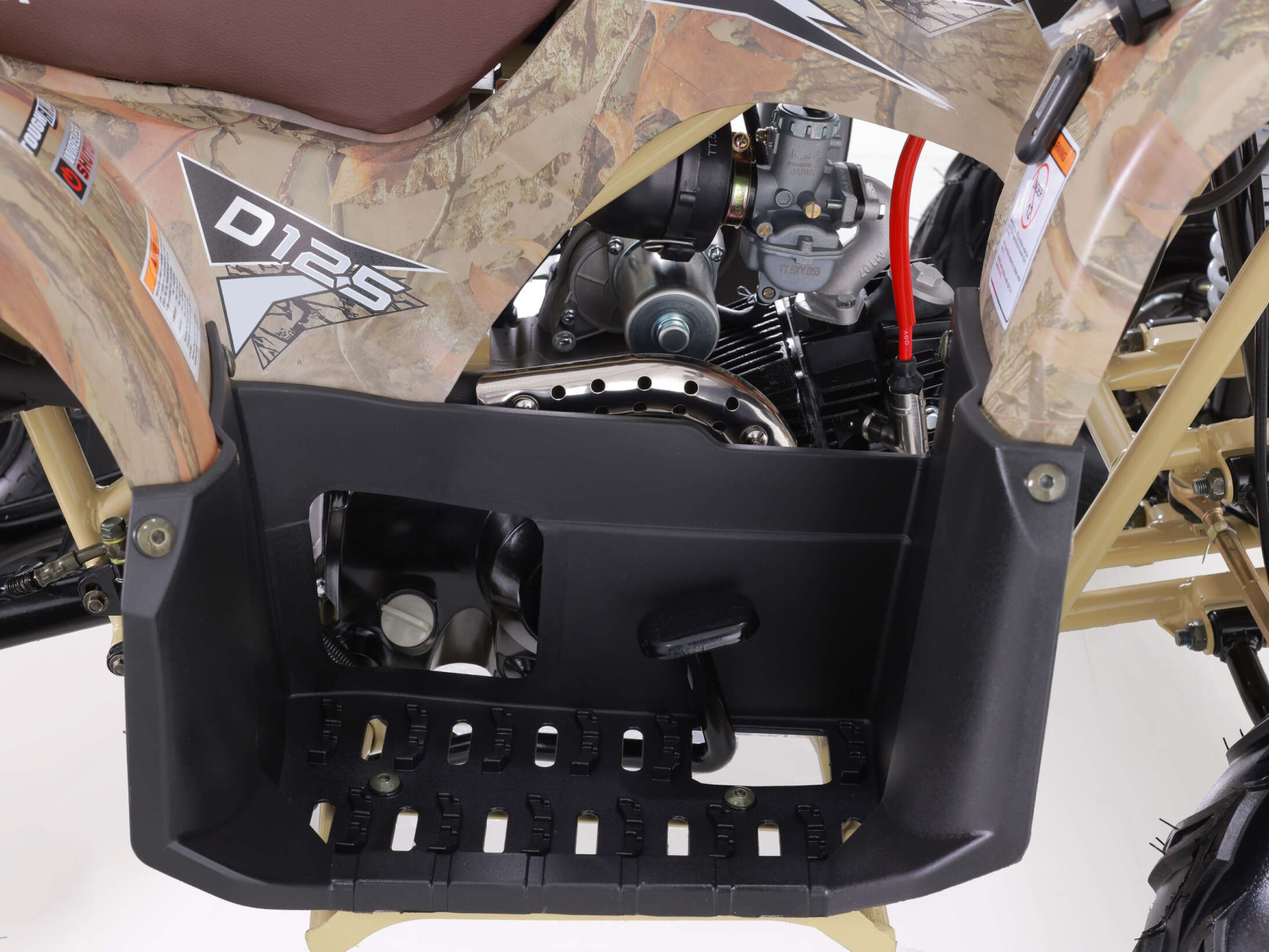Like the Boulder, the D125 has also been a fan favorite for years, and rightfully so. A youth size gas powered ATV with a utility styling, it has all the great safety features that parents ask for. Continuing the trend of upgrades and redesigns as we did with the Boulder, we decided to do a complete overhaul on the D125 as well. The all new D125 still comes stocked with our 107cc 4 stroke engine that goes in forward, and reverse, with 7” wheels and tires, as well as our same great safety features such as the remote wireless shut off for an extra layer of protection and a speed governor limiting the top speed, set by parents. And while we kept the best features of the D125, like the Boulder, an all new selection of colors are now available. And not only does it look brand new, the D125 also features upgraded components, making it a top choice for your beginner rider, at an affordable price.
