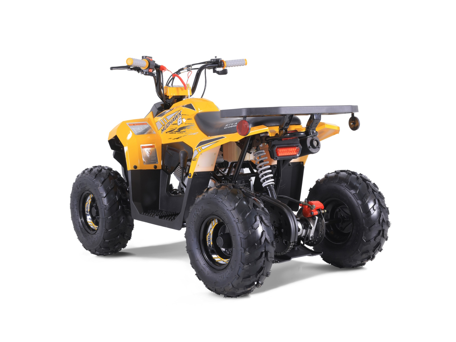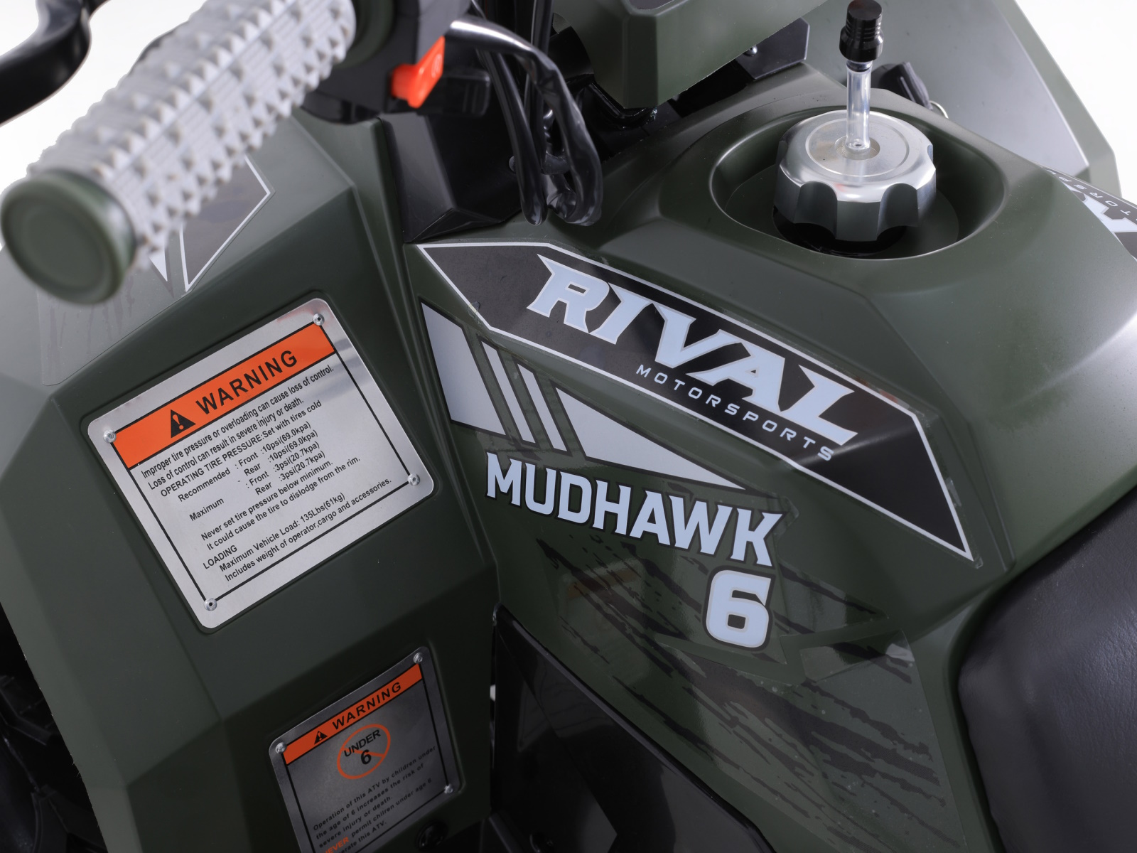 It's back and better than ever. The Mudhawk 6 has countless features that make it one of our most sought after youth ATV's. Rated for the youngest riders aged six and up, the Mudhawk 6 features an automatic transmission that allows siders to go in forward and reverse. Though it has all the capabilities of a larger ATV, the Mudhawk 6 comes stocked with out throttle limiter and remote shut off, ensuring a sage fun experience while building confidence in the smallest of riders. The Mudhawk 6 now comes in different colors and packed with extra features, the Mudhawk 6 is still the same outstanding ATV everyone has come to love!