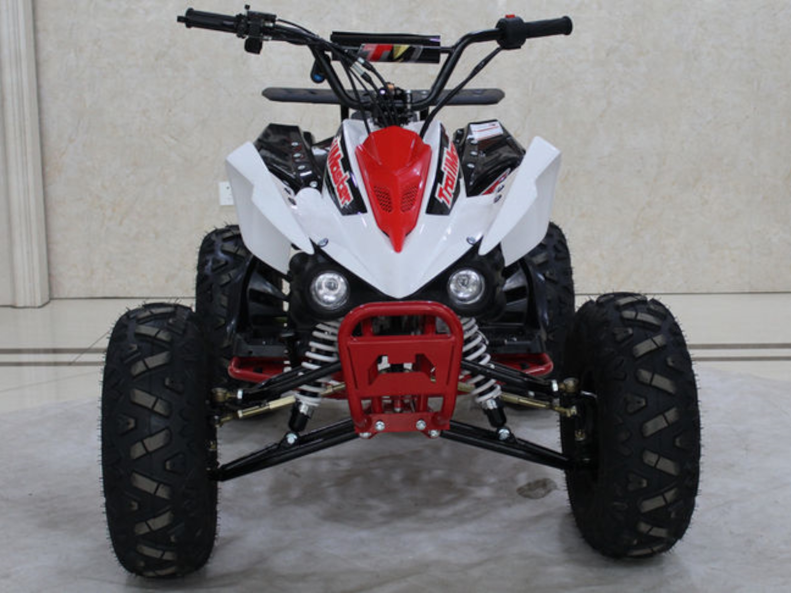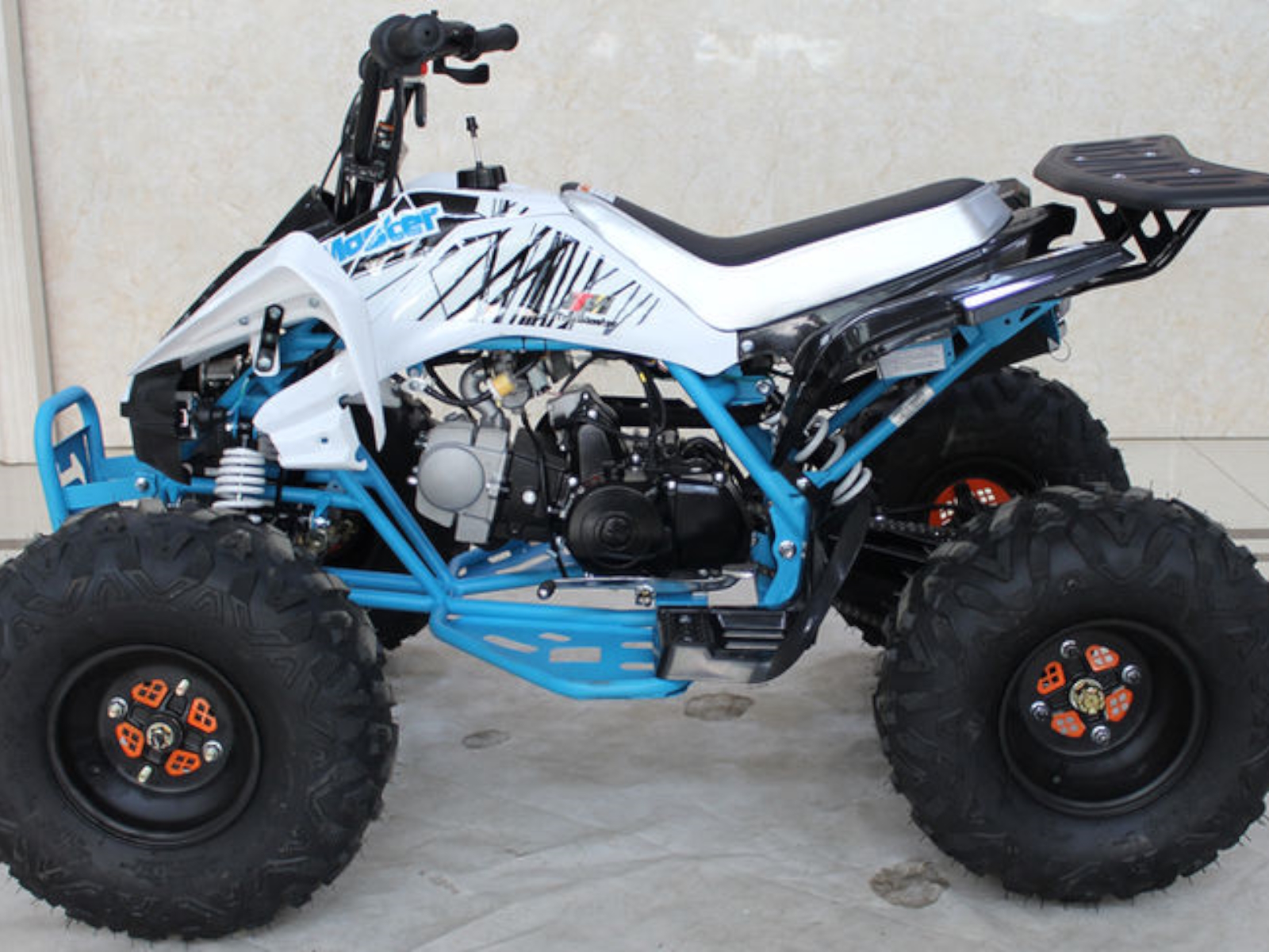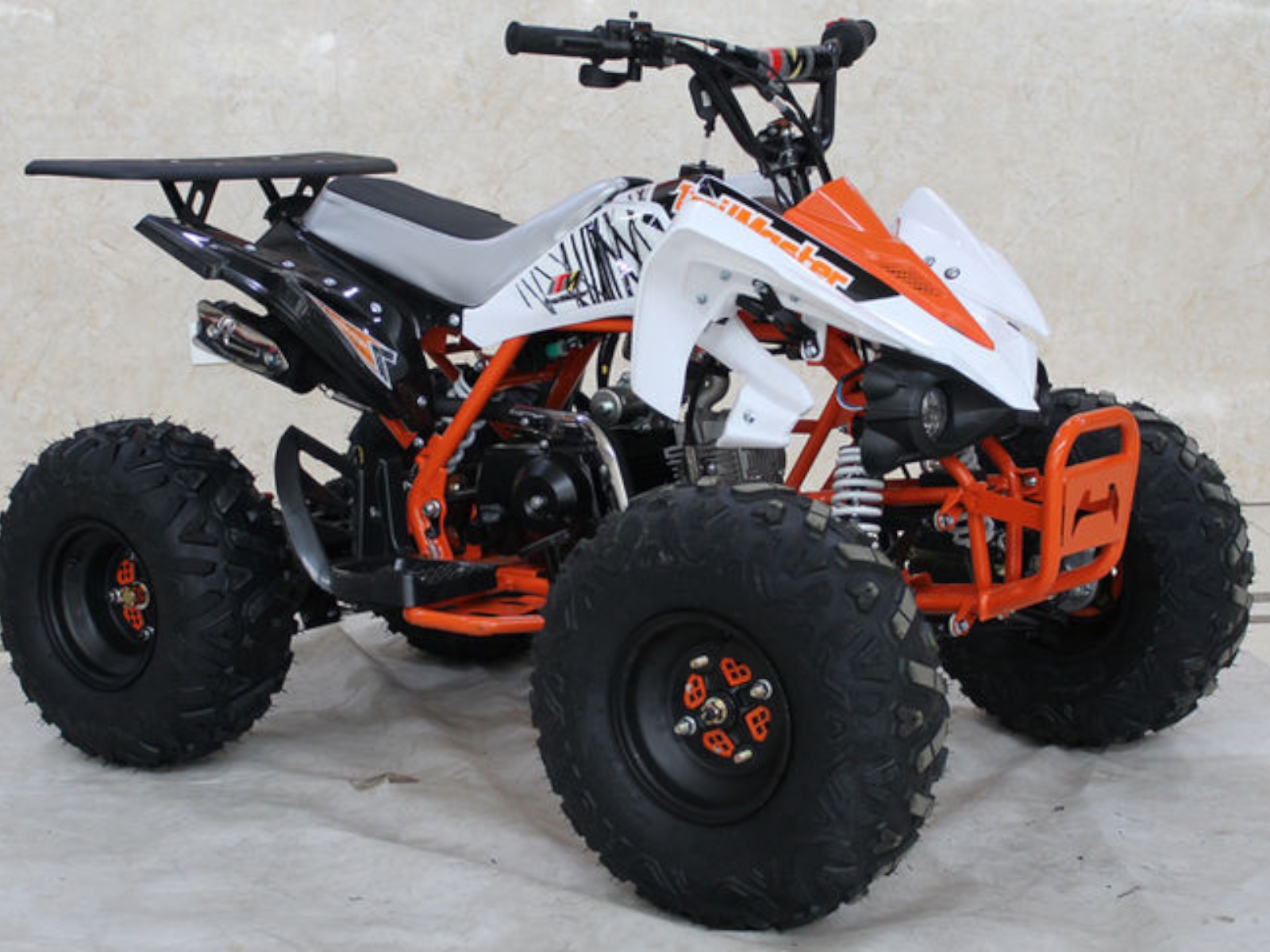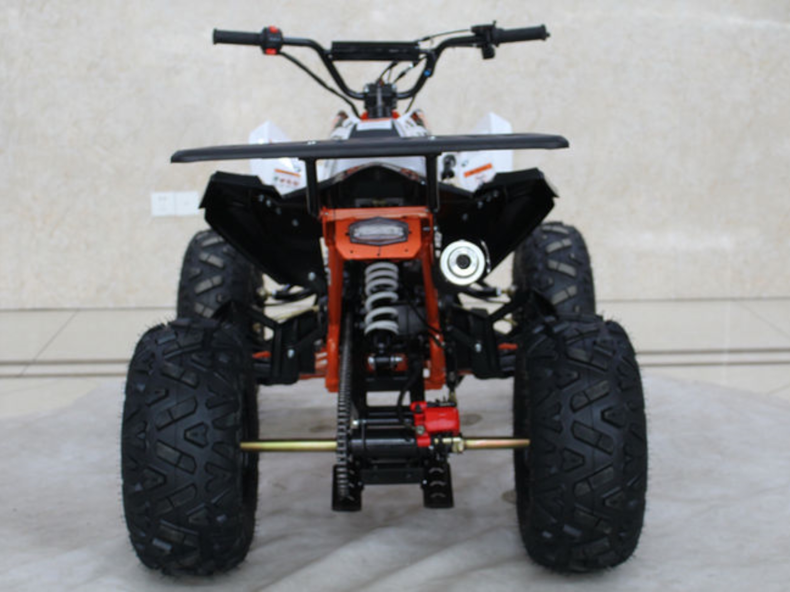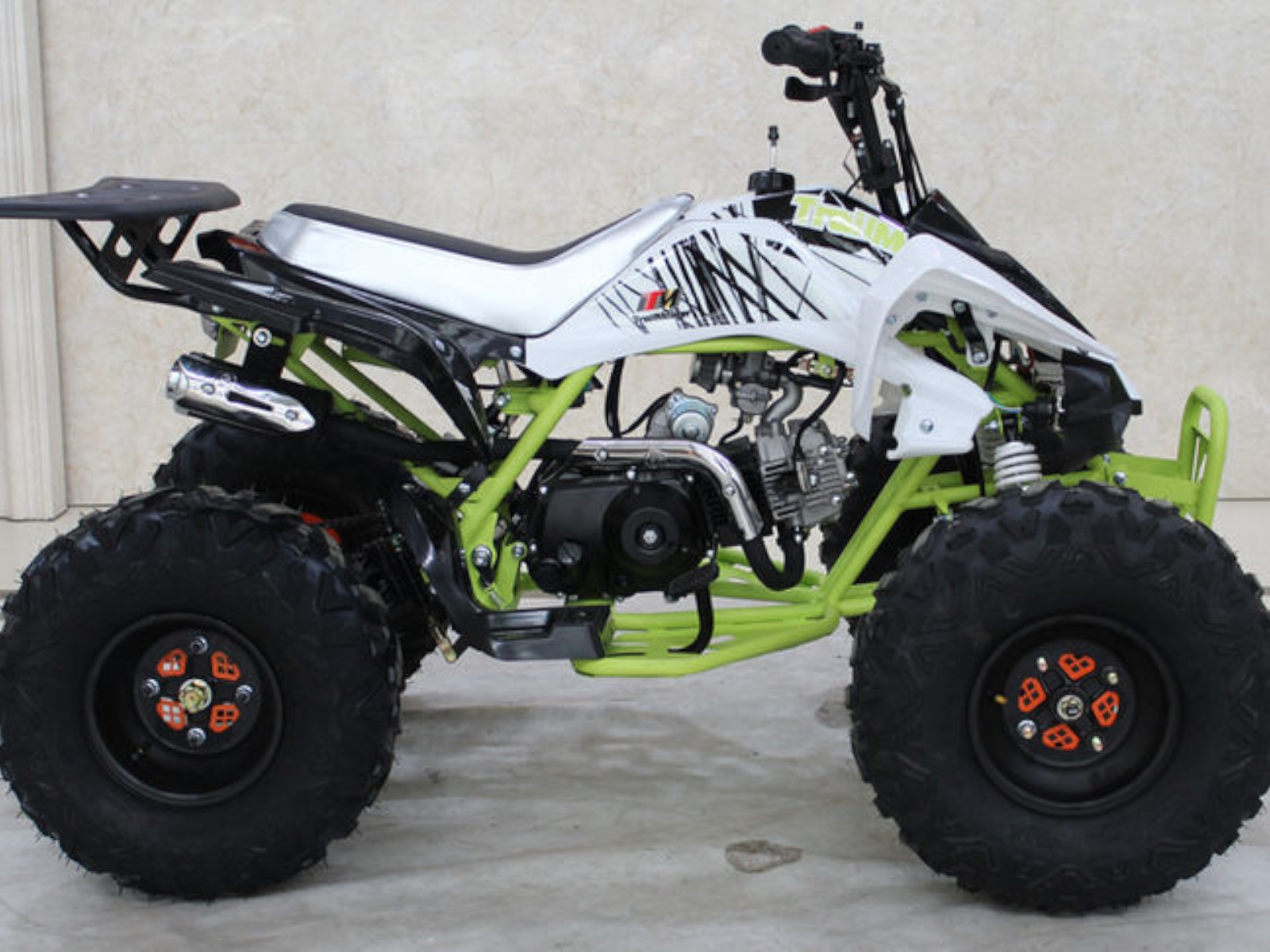 Check out the K125U Mid-Size 125cc Utility ATV for kids and you will be impressed with the quality and detail of this quad. The K125U boasts the same great features found on much more expensive name brand ATVs, like rear hydraulic disc brakes, front drum brakes, a full suspension, powerful 125cc, 4-stroke engine with CDI ignition and electric start for smooth and steady running. Plus this sporty kids ATV comes complete with a rear rack, front and rear lighting and more! The automatic transmission is controlled from an easy access foot shifter for simple maneuvering between forward, neutral and reverse. A tough chain drive and big, aggressive all-terrain tires round out the goodies on this 4-wheeler.