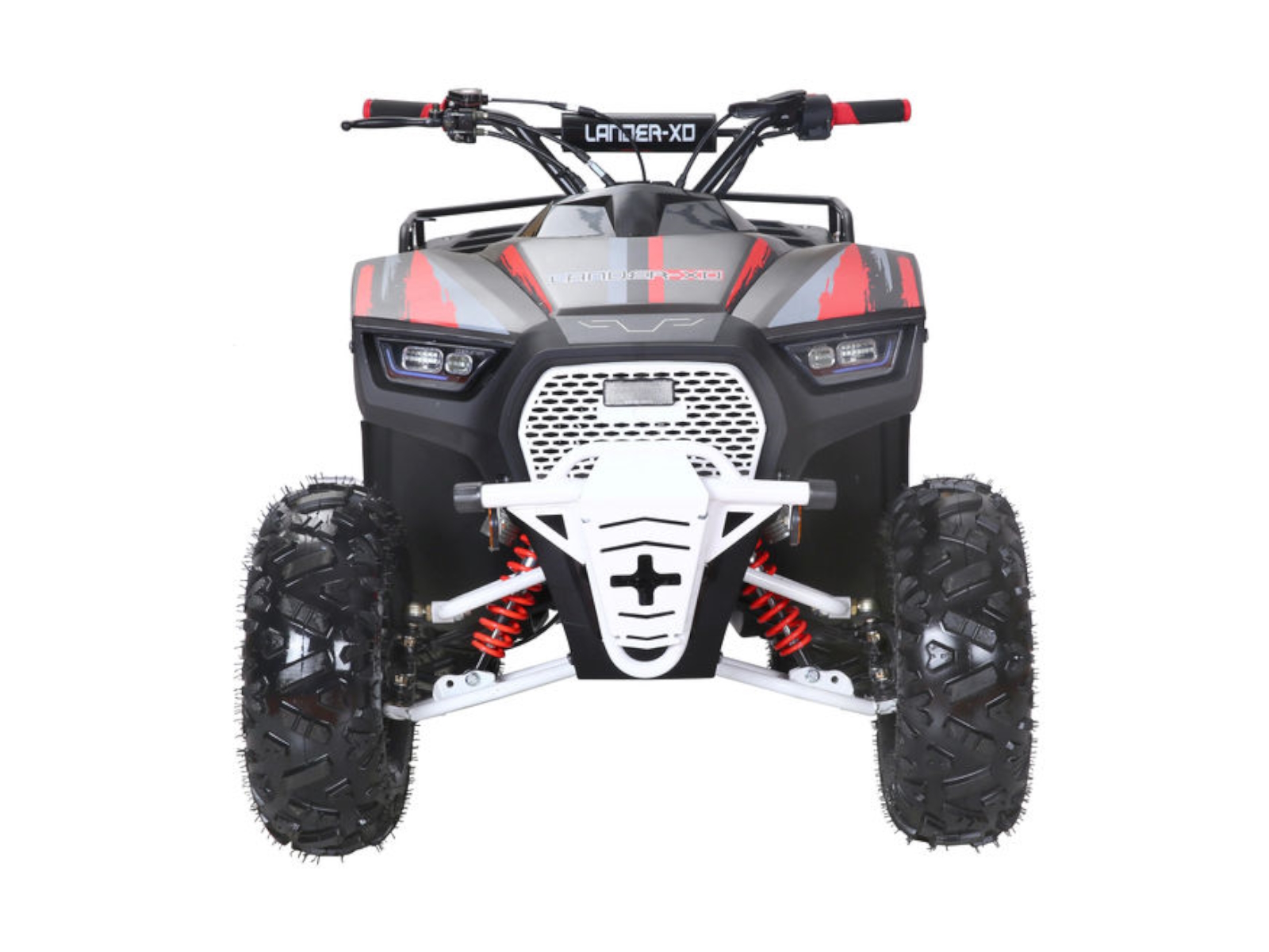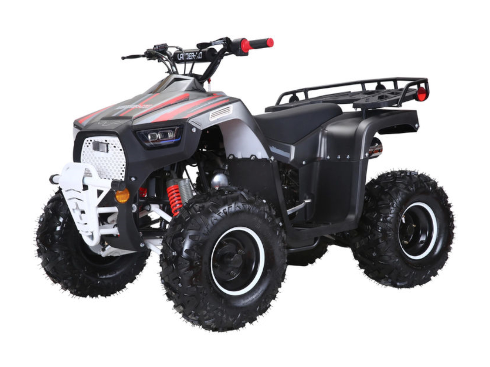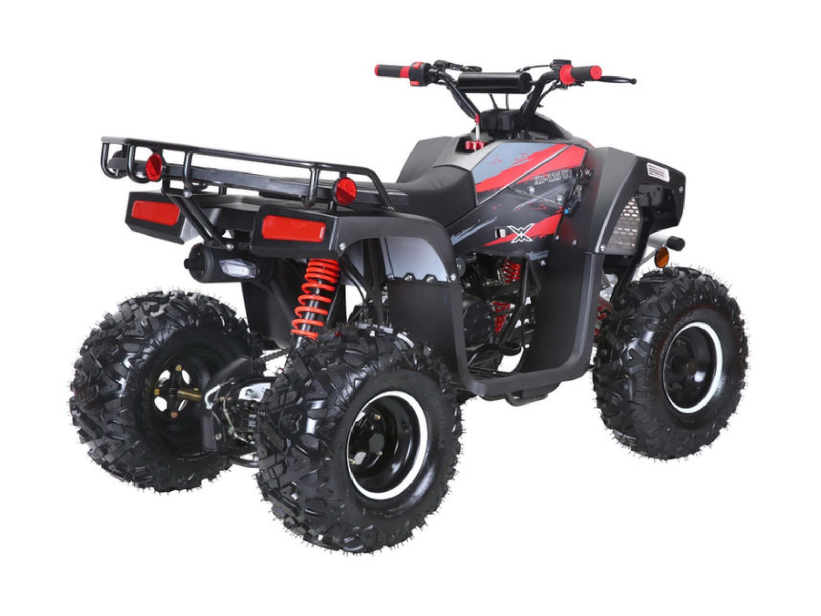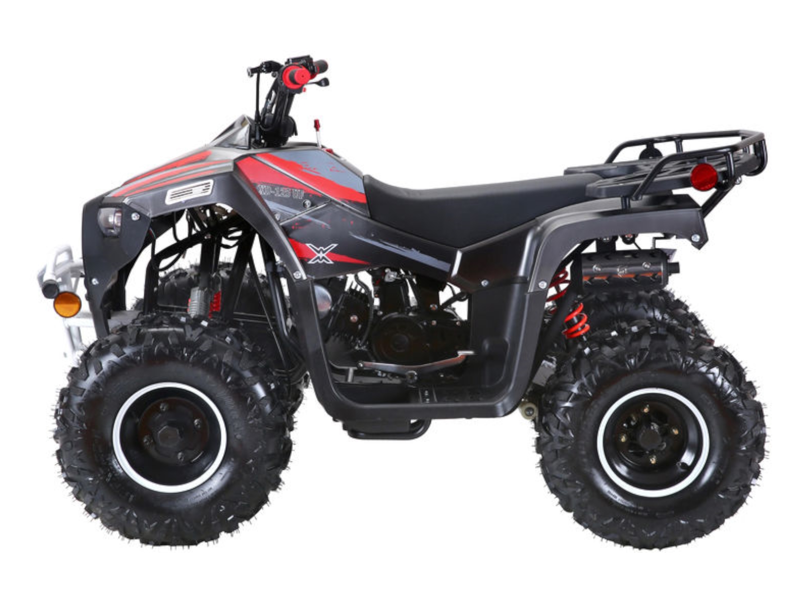 Check out the XD 125UF Mid‐Size 125cc Utility ATV for kids and you'll be impressed with the quality and detail of this quad. The XD 125UF boasts the same great features found on much more expensive name brand ATVs, like rear hydraulic disc brakes, front drum brakes, a full suspension, powerful 125cc, 4‐stroke engine with CDI ignition and electric start for smooth and steady running. Plus this ATV comes complete with utility racks, front and rear lighting and more! A 4 speed transmission is connected to a tough chain drive and big, aggressive all‐terrain tires round out the goodies on this 4‐wheeler.