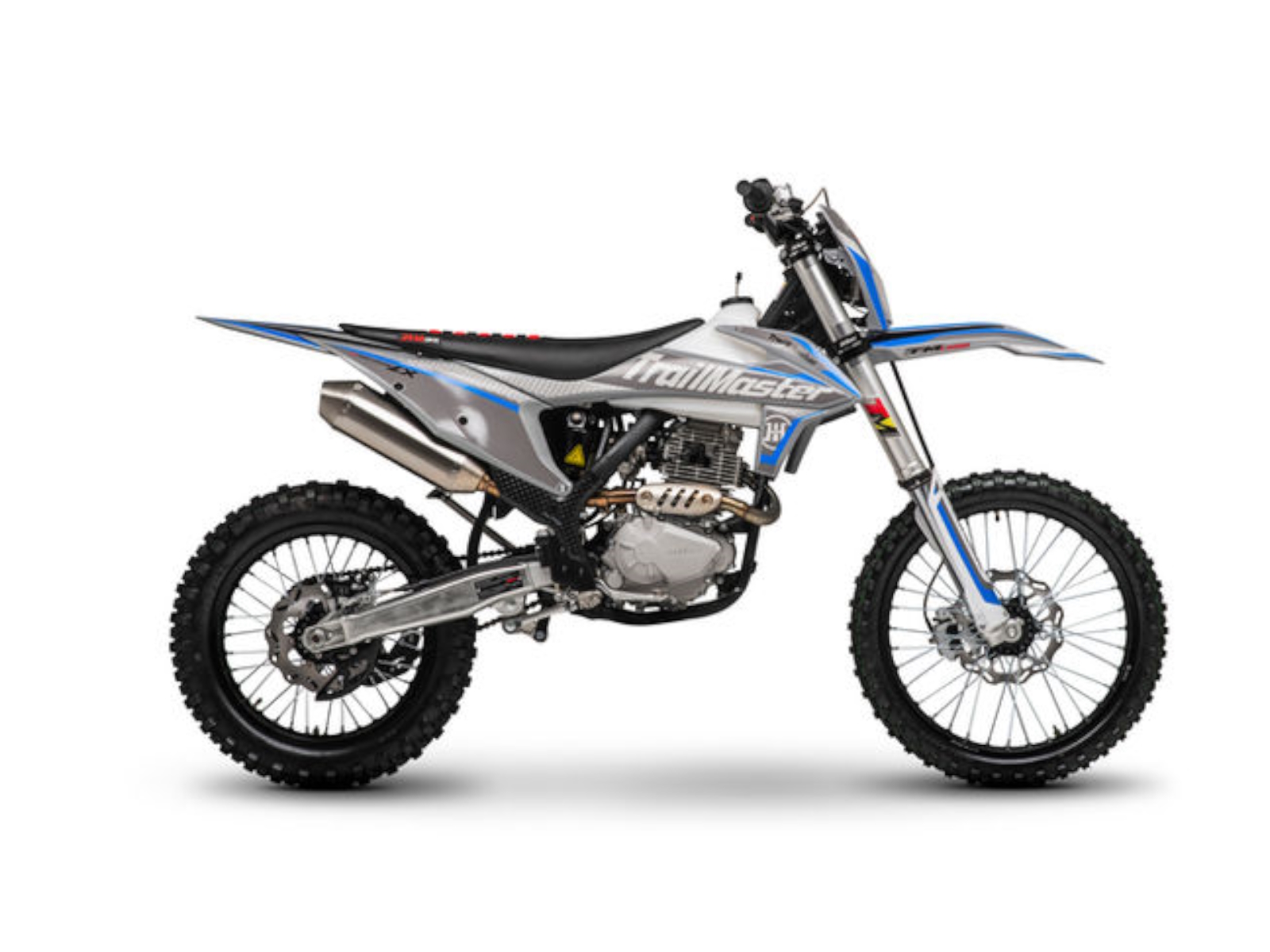 Trailmaster cooperating with JHL Offroad introduces The LX 250, a premium PRO-Series mid size dirt bike. It has both a kick start and a “ELECTRIC START” to start a high performance extremely reliable Zhongshen 249cc 4 stroke 14hp engine with a seat height of 37.4”and a slim weight of 266lbs. It is available in red, and blue colors. The LX250 features a 5 speed manual transmission with front and rear disc brakes, and inverted front shock. This is sure to be a HOT seller! As a Dual Sport bike it comes standard with Rearview mirrors, turn signals, speedometer and tail light. Additional standard premium items with our Pro-Series line include; large frame, inverted 54/60-950mm dual adjustable front shock absorber, high quality rear dual adjustable absorber, performance stainless steel muffler, high quality LED headlight with lens, CNC forged alloy wheels, high performance CHOCHO 520HDS chain, CNC alloy unbreakable levers, CNC forged alloy upper and lower triple clamps, 7 series aluminum alloy handlebar, waterproof wire harness, non-slip gripper seat, quality front and rear disc brakes. The bikes full on motocross ergonomics and race suspension system make handling feel natural and unforced, and help it navigate over any terrain. Electronic CDI ignition makes key and kick starting effortless, keeps the bike running smoothly in all gears and provides a broad, even power band.