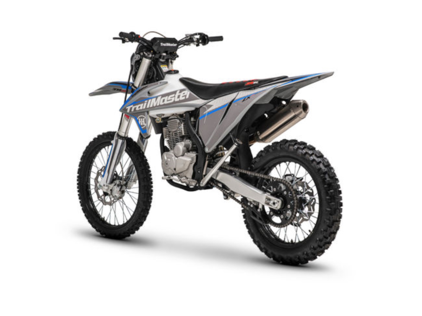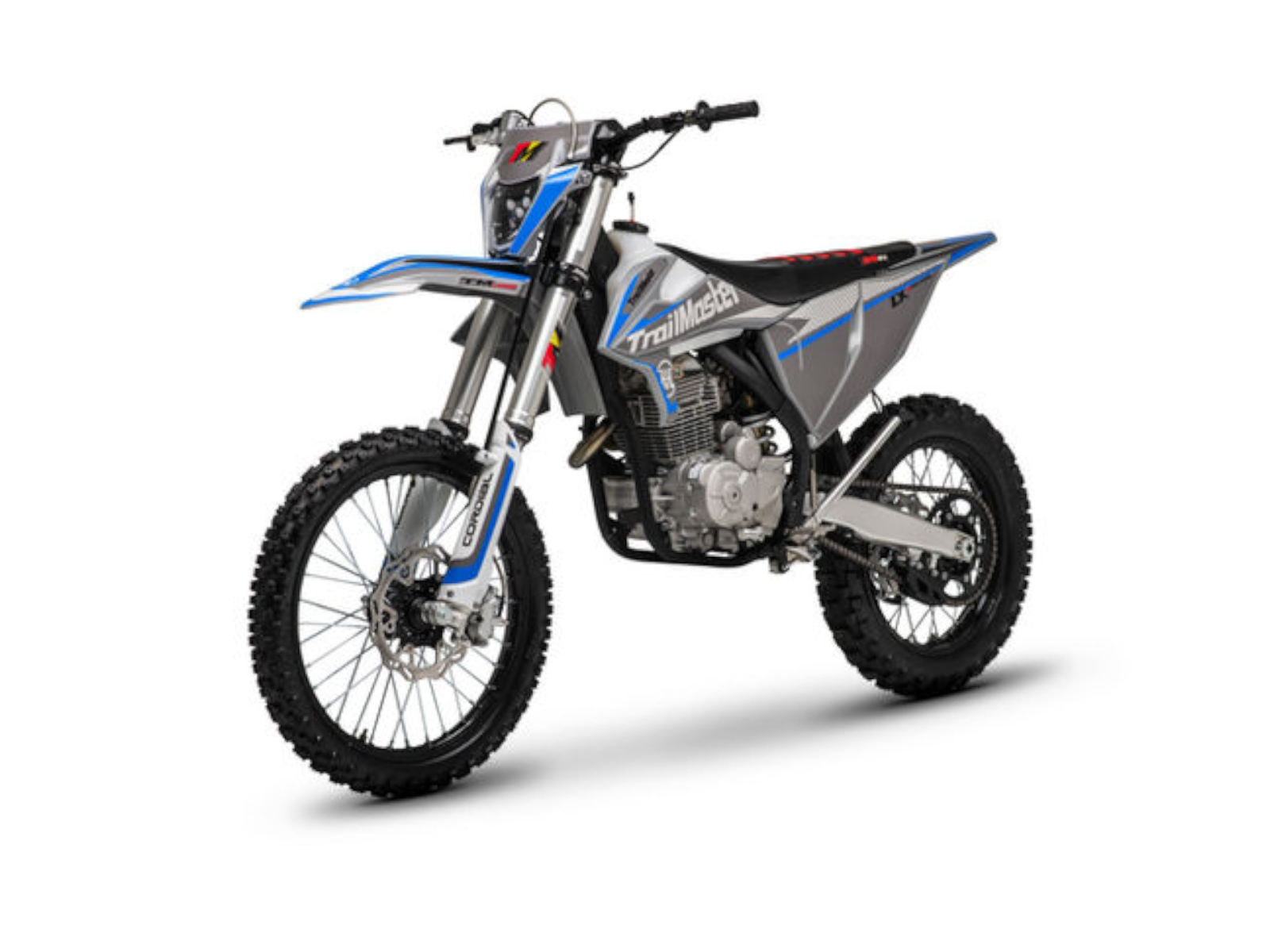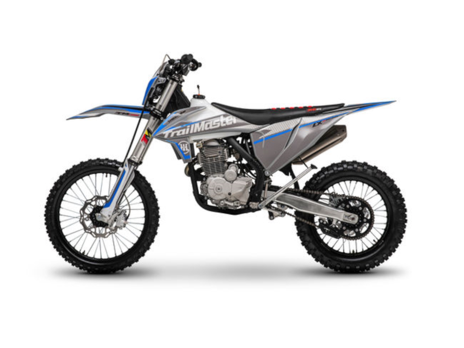 Trailmaster cooperating with JHL Offroad introduces The LX 250, a premium PRO-Series mid size dirt bike. It has both a kick start and a “ELECTRIC START” to start a high performance extremely reliable Zhongshen 249cc 4 stroke 14hp engine with a seat height of 37.4”and a slim weight of 266lbs. It is available in red, and blue colors. The LX250 features a 5 speed manual transmission with front and rear disc brakes, and inverted front shock. This is sure to be a HOT seller! As a Dual Sport bike it comes standard with Rearview mirrors, turn signals, speedometer and tail light. Additional standard premium items with our Pro-Series line include; large frame, inverted 54/60-950mm dual adjustable front shock absorber, high quality rear dual adjustable absorber, performance stainless steel muffler, high quality LED headlight with lens, CNC forged alloy wheels, high performance CHOCHO 520HDS chain, CNC alloy unbreakable levers, CNC forged alloy upper and lower triple clamps, 7 series aluminum alloy handlebar, waterproof wire harness, non-slip gripper seat, quality front and rear disc brakes. The bikes full on motocross ergonomics and race suspension system make handling feel natural and unforced, and help it navigate over any terrain. Electronic CDI ignition makes key and kick starting effortless, keeps the bike running smoothly in all gears and provides a broad, even power band.
