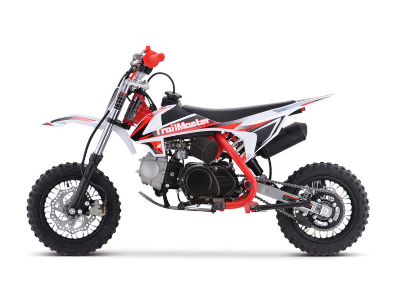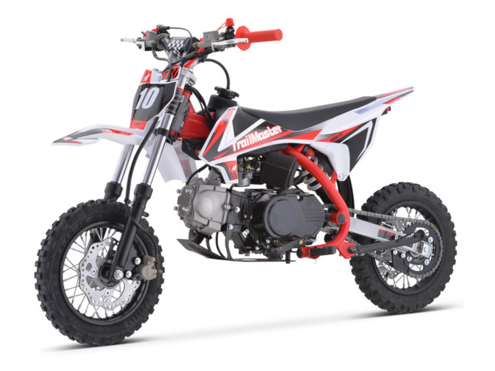 The TM 10‐110 (SEMI‐AUTO) is a great Junior size dirt bike. It has a high performance 110cc 4 stroke 6 hp engine with kick start and a top speed of around 35 MPH and a seat height of 24”. It is available in red, blue, green, and orange colors. The TM10 features a 4 speed SEMI‐Automatic transmission with front and rear disc brakes, 10” front & Rear Tire and a heavy duty frame built for durability! This is sure to be a HOT seller!