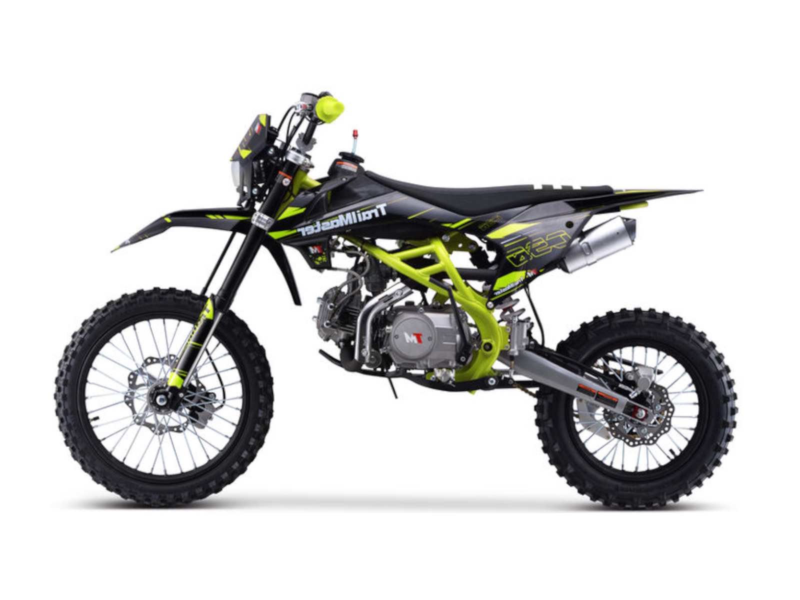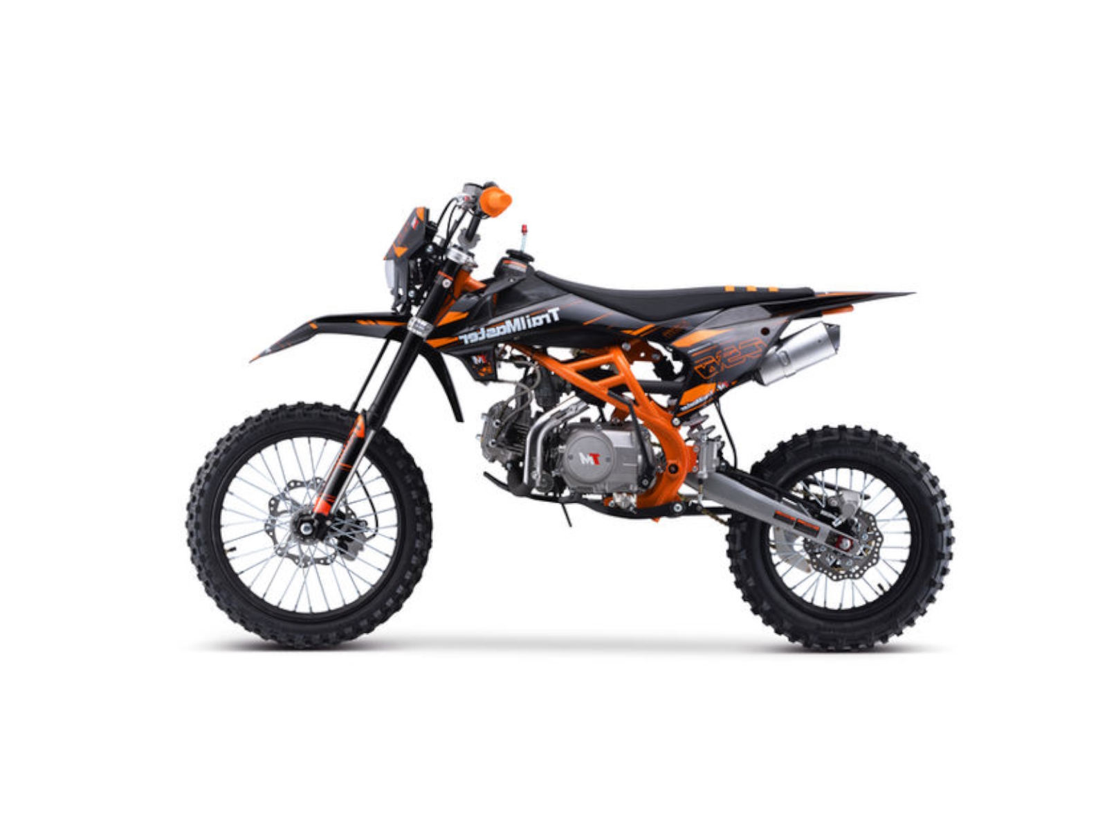 The TM C50 is a great mid size dirt bike. It has a high performance 145cc 4 stroke 9.1hp engine with electric & kick start and a top speed of around 55 MPH and a seat height of 33.5”. It is available in red, green, and orange colors. The TM C50 features a 4 speed manual transmission with front and rear disc brakes, and inverted front shocks! This is sure to be a HOT seller! The bikes full on motocross ergonomics and race suspension system make handling feel natural and unforced, and help it navigate over almost any type of terrain. Electronic CDI ignition makes kick starting effortless, keeps the bike running smoothly in all gears and provides a broad, even power band. And at only 172 pounds, the 145cc engine can propel the motorcycle to speeds of 55 miles per hour.