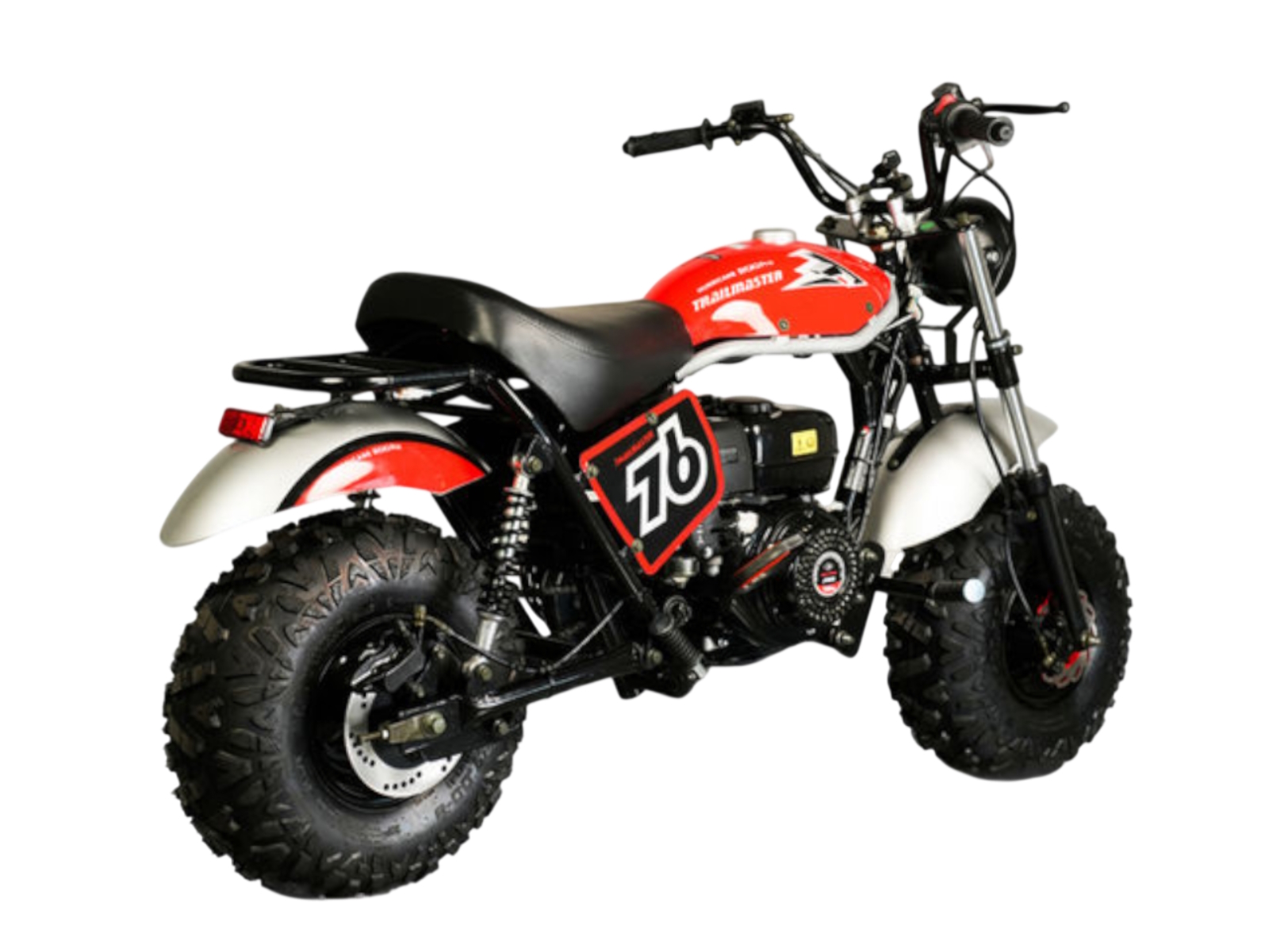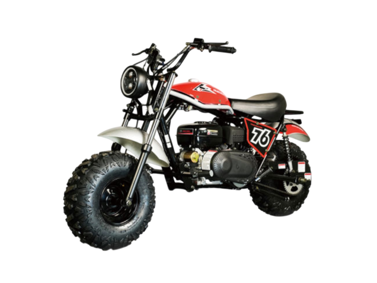 The Trailmaster Hurricane 200 PRO Mini Bike has all the loved features of the 200X with a new Electric Start. It is powerful, reliable and easy to operate. With larger rugged 19 in. AT tires and a 196 cc / 6hp engine, with torque convertor, CVT drive, this mini bike reaches speeds up to 24 MPH. With a high strength steel frame, front and rear suspension, hydraulic front and rear disc brakes, and enlarged seat, LED Headlight, the Hurricane supports up to 200 lbs. This stylish mini bike is perfect for cruising around the home and ranch, whether you're a teenager or adult.