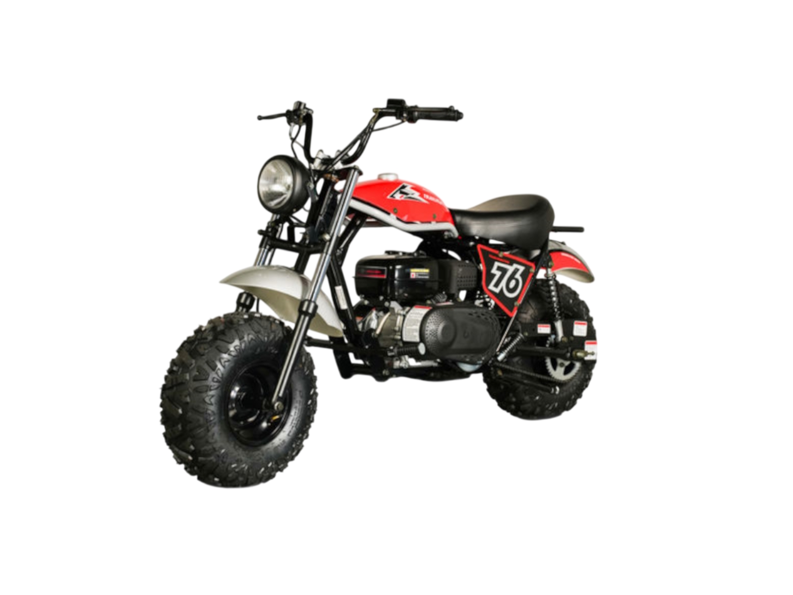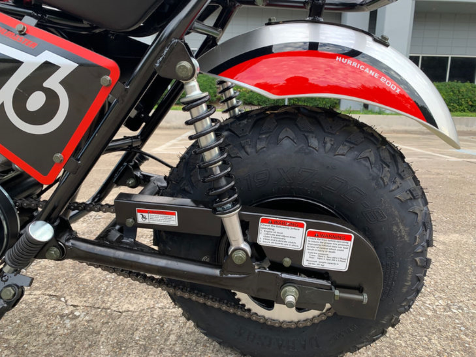 The Trailmaster Hurricane 200X Mini Bike is powerful, reliable and easy to operate. With larger rugged 19 in. AT tires and a 196 cc / 6hp engine, this mini bike reaches speeds up to 24 MPH. With a high strength steel frame, front and rear suspension, front and rear disc brakes, and enlarged seat, the Hurricane supports up to 200 lbs. This stylish mini bike is perfect for cruising around the home and ranch, whether you're a teenager or adult.