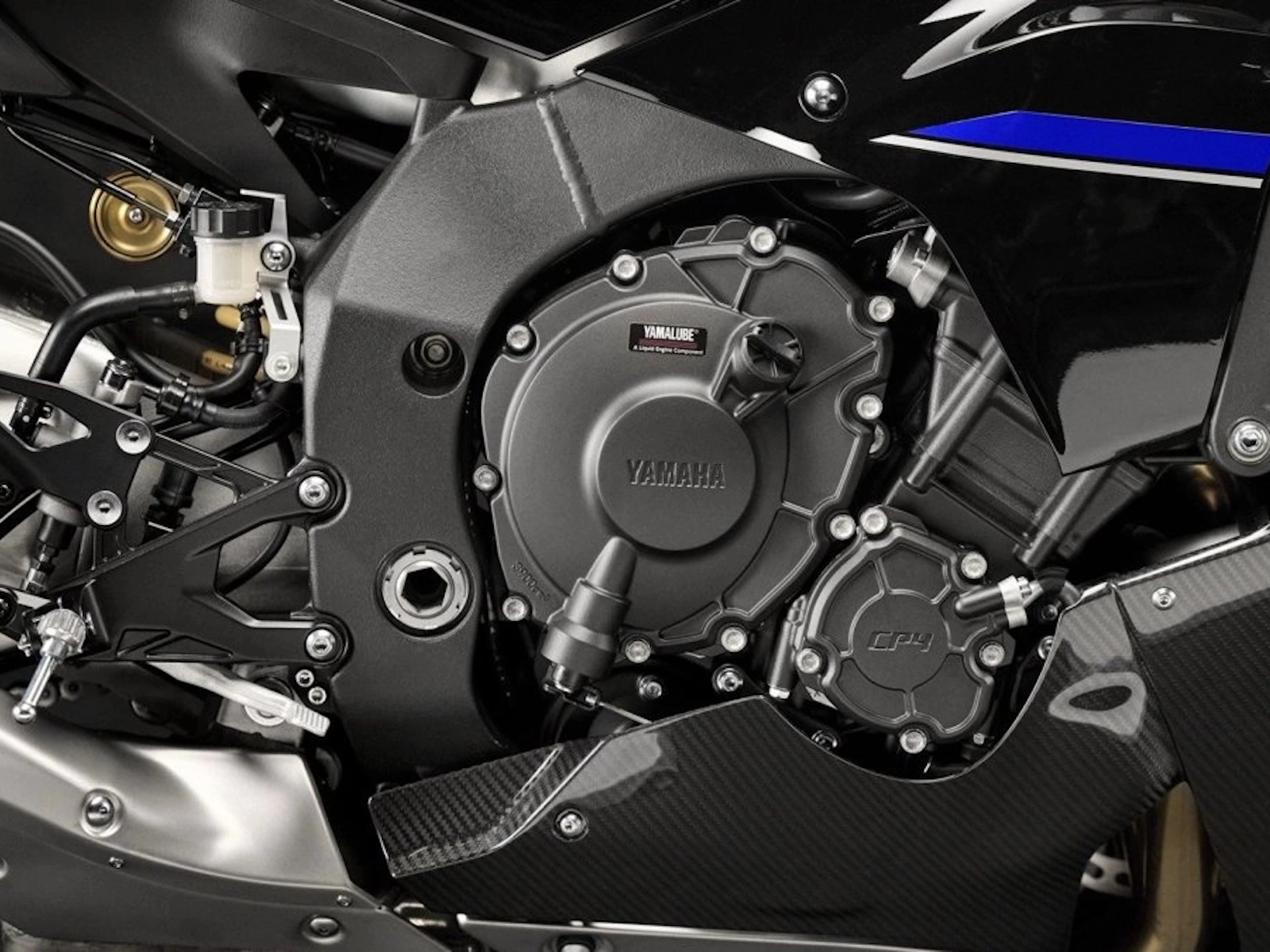 The YZF-R1's 998cc inline-four-cylinder engine features Yamaha's exclusive crossplane crankshaft technology derived from the YZR-M1 MotoGP® race bike. By equalizing inertial forces at the crankshaft, the CP4 motor delivers a direct feeling of linear torque, giving the rider the ultimate connection between throttle grip and the rear wheel.
