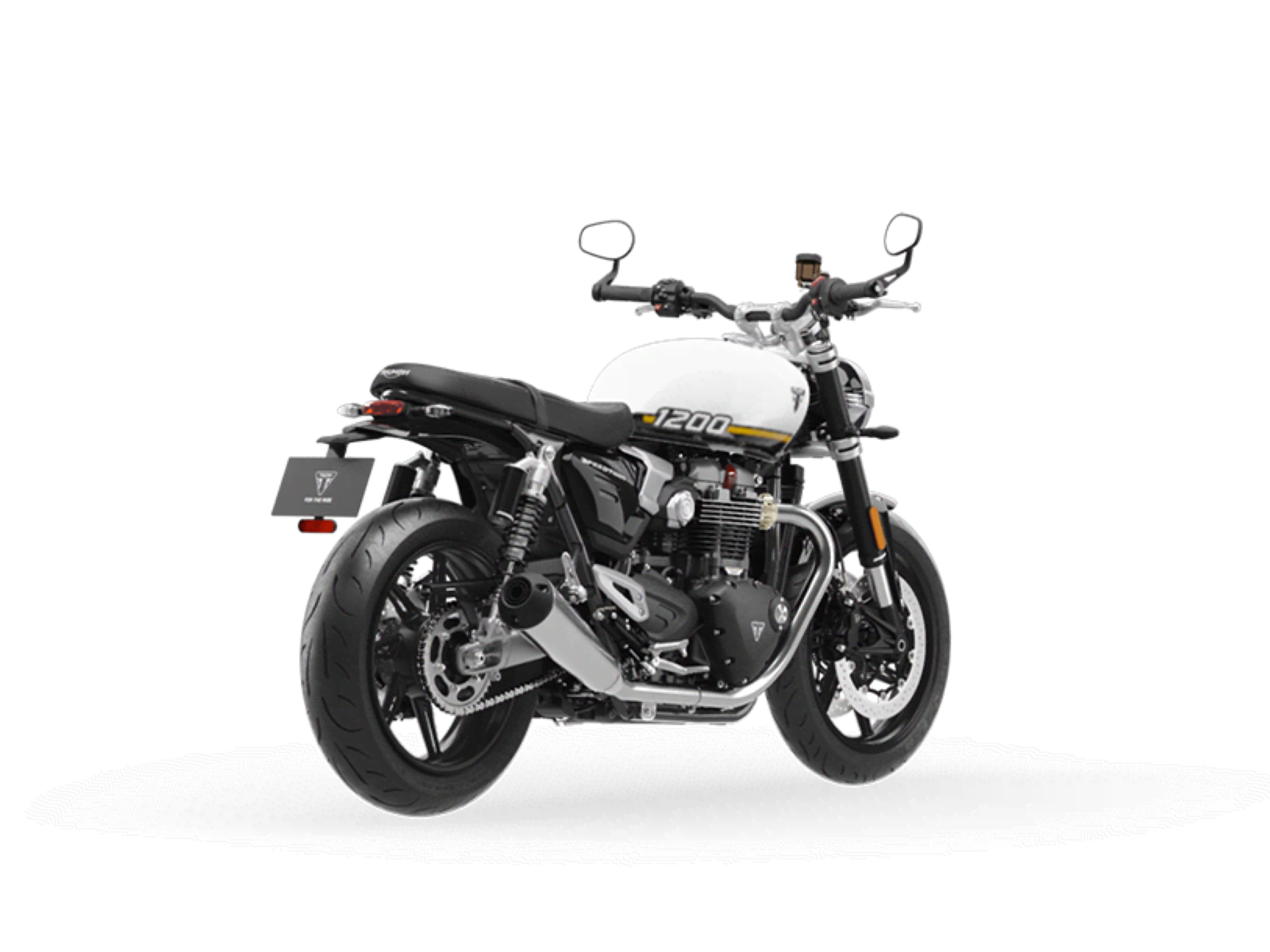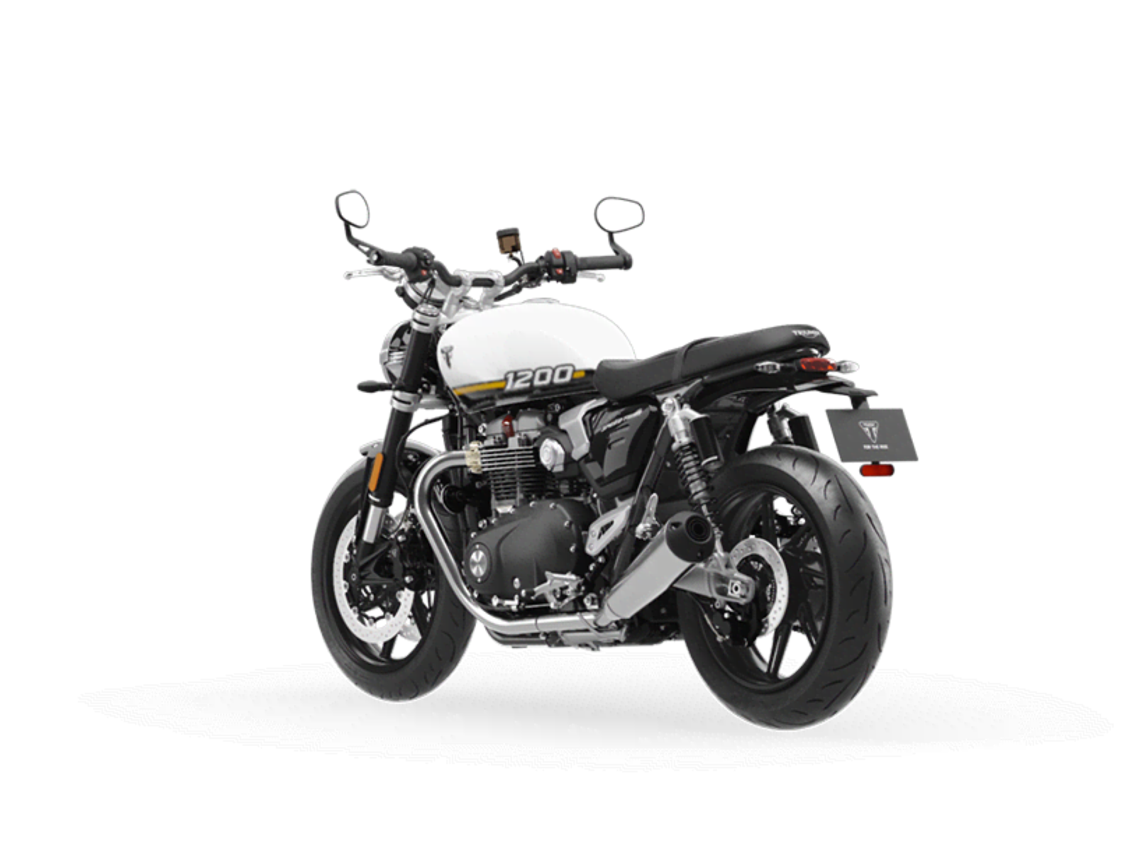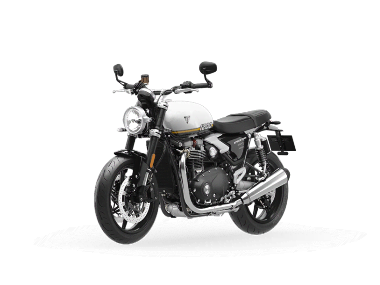 Stunning and uncompromising, the Speed Twin 1200’s sleek, minimal design has evolved. The raked fuel tank, with its deep front cutouts, is chiseled and muscular, while the minimal throttle body covers are finished in brushed aluminum and integrated seamlessly into sculpted side panels within the slim rear frame. Underneath, the lean, angular engine casings are powder-coated black and framed by an uninterrupted exhaust run flowing into twin upswept ‘megaphone’ silencers.