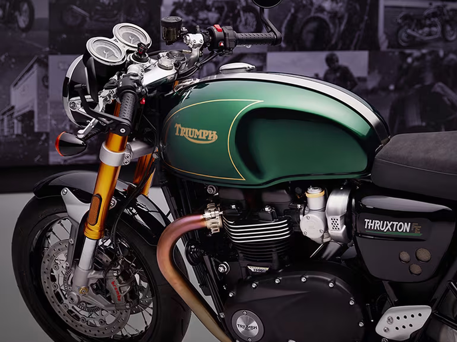 Contrasting black side panels and mudguard set off the Final Edition’s racing-inspired Competition Green metallic paint scheme, while hand-painted gold-line detailing beautifully complements the gold heritage logo and Final Edition seat cowl branding, combining to create a design scheme that blends a celebration of the Thruxton’s racing history with contemporary design flair.