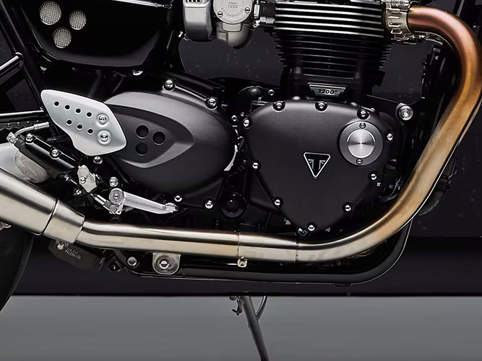 The 'High-Torque’ 1200cc twin-cylinder engine is fed by twin throttle bodies and delivers thrilling modern performance with real character. Beautifully engineered and finished to complement the Thruxton’s heritage-inspired design and with a rich and evocative British-twin soundtrack from twin conical silencers.