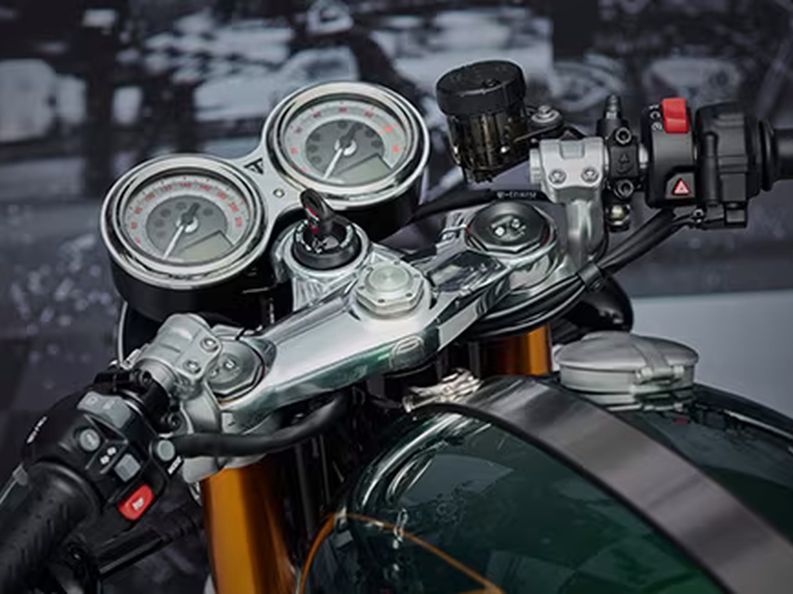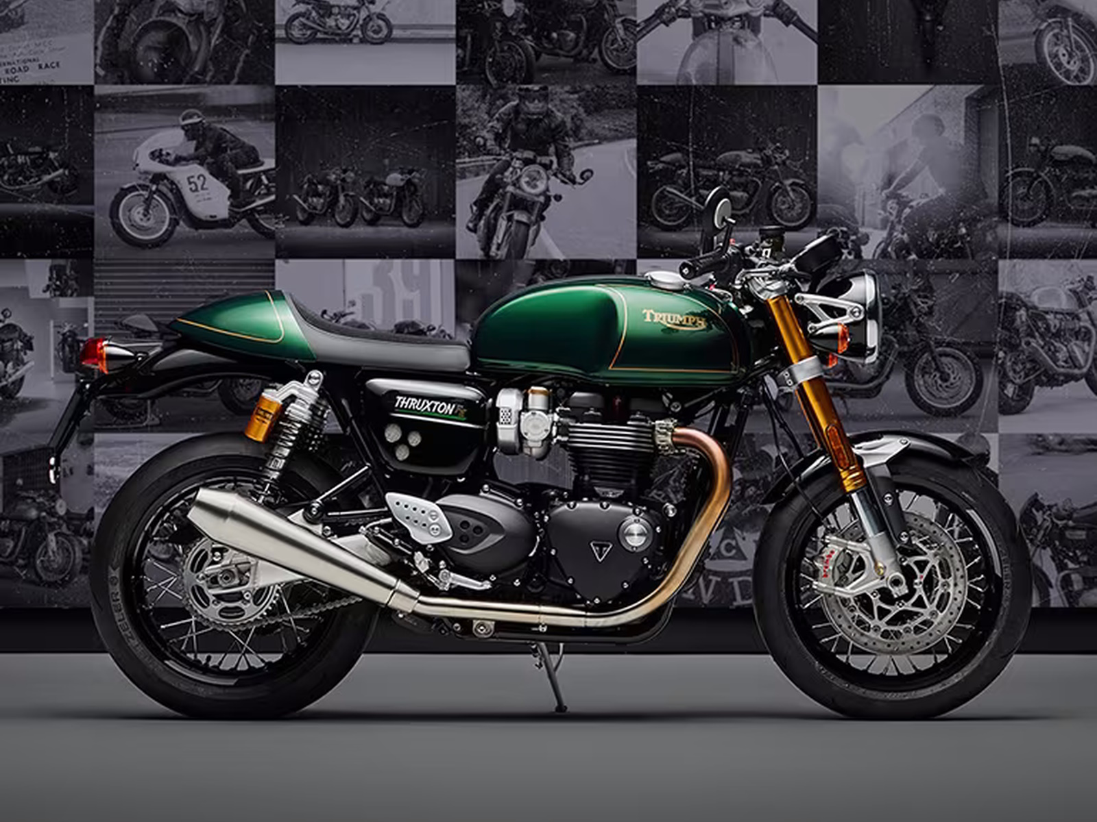 Agile and focused, the Thruxton’s sublime handling is the result of sporty, engaging ergonomics and a beautifully-balanced chassis fitted with class-leading suspension and braking components from Showa, Öhlins and Brembo. Race-spec Metzeler Racetec RR tires complete this thrilling package.
