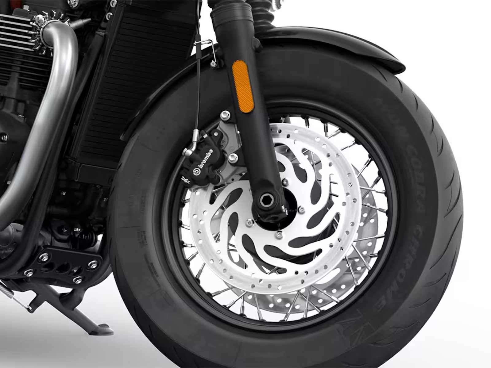 Adding to the class-leading finish with an even meaner and moodier look, courtesy of black powder coated engine covers, cam cover and sprocket cover, for a result that's as thrilling to look at as it is to ride. - HIGHER SPEC BRAKES