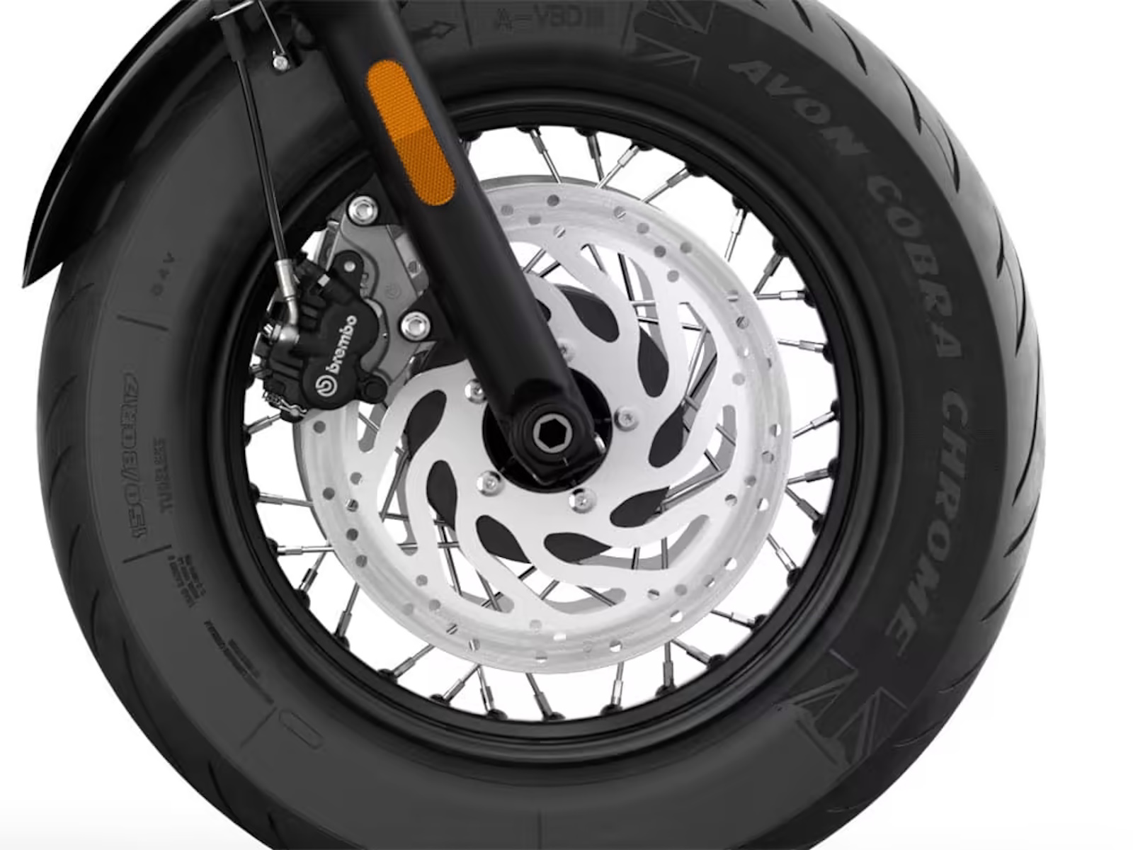 47mm Showa cartridge front forks with 3.5 in (90mm) travel and the Bobber's innovative hidden monoshock rear suspension with linkage, combine for superior suspension performance and comfort. - HIGHER SPEC TECHNOLOGY