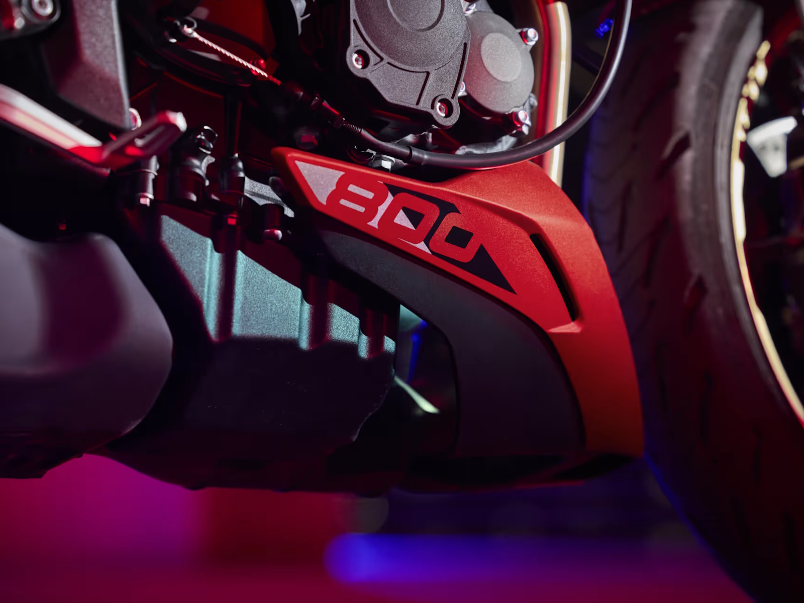 - A commanding, muscular stance and bold design that’s bristling with dynamic energy. The pared-back bodywork emphasizes the chassis and engine and creates a purposeful silhouette.