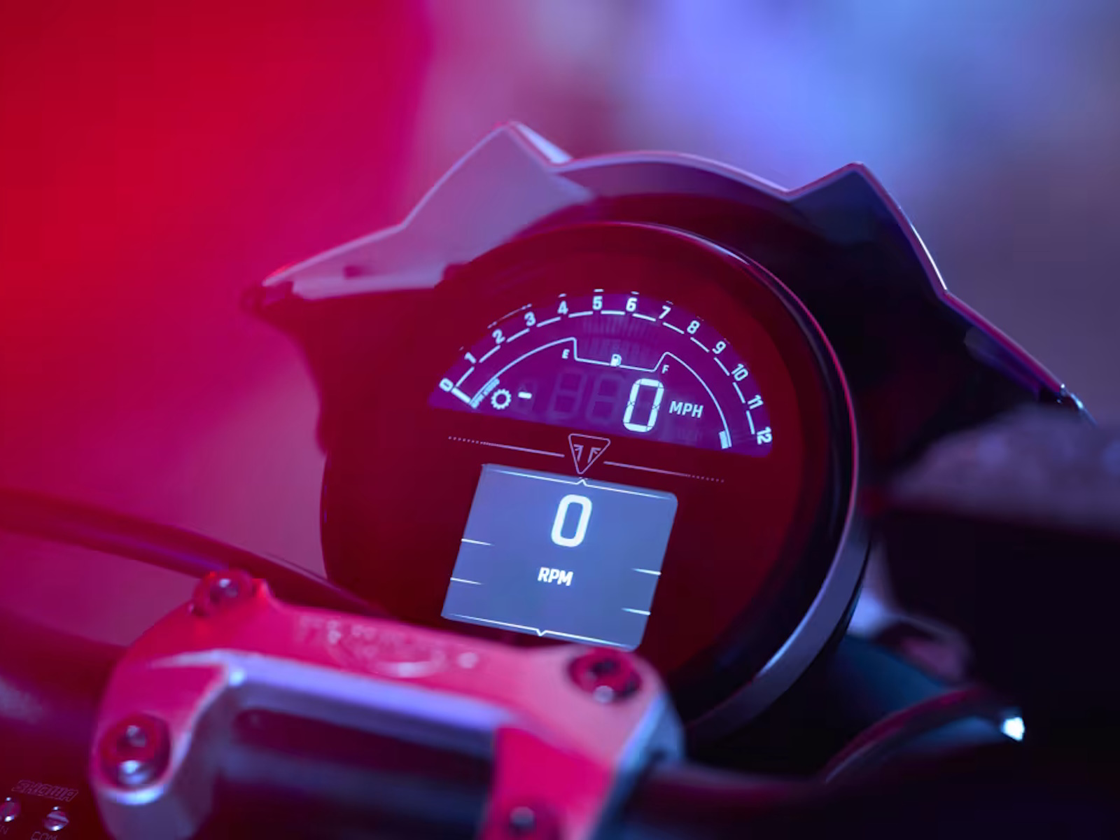 - Immediate throttle response, unrelenting mid-range and a signature triple soundtrack, with three riding modes to optimize power delivery.