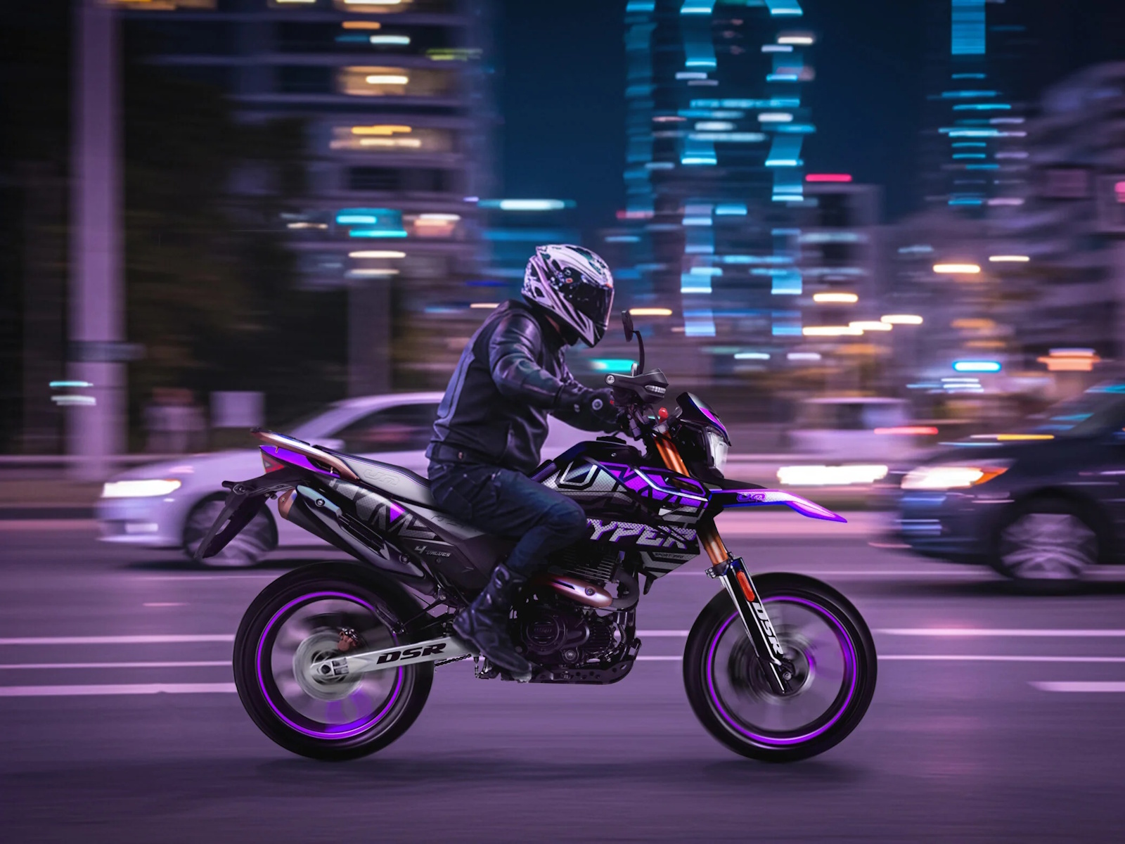 - The DSR Hypersport 250cc combines the best of supermoto design with an aggressive aesthetic, bold lines, and vibrant colors that make it impossible to ignore. Its presence commands respect both on the street and on the open road. Designed for those who don't want to go unnoticed, this motorcycle not only looks good: its ergonomic design also offers a comfortable and commanding riding position. Whether you use it to commute, cruise around town, or set out to conquer new routes, its style speaks for itself: young, free, and full of character.