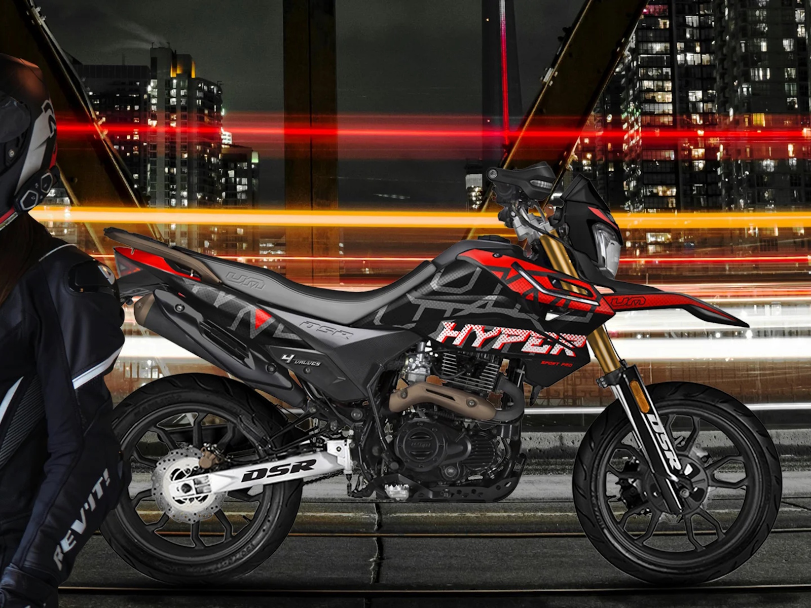 - The DSR Hypersport 250cc combines the best of supermoto design with an aggressive aesthetic, bold lines, and vibrant colors that make it impossible to ignore. Its presence commands respect both on the street and on the open road. Designed for those who don't want to go unnoticed, this motorcycle not only looks good: its ergonomic design also offers a comfortable and commanding riding position. Whether you use it to commute, cruise around town, or set out to conquer new routes, its style speaks for itself: young, free, and full of character.