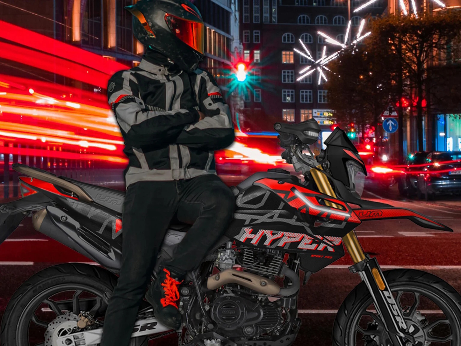 - The DSR Hypersport 250cc combines the best of supermoto design with an aggressive aesthetic, bold lines, and vibrant colors that make it impossible to ignore. Its presence commands respect both on the street and on the open road. Designed for those who don't want to go unnoticed, this motorcycle not only looks good: its ergonomic design also offers a comfortable and commanding riding position. Whether you use it to commute, cruise around town, or set out to conquer new routes, its style speaks for itself: young, free, and full of character.