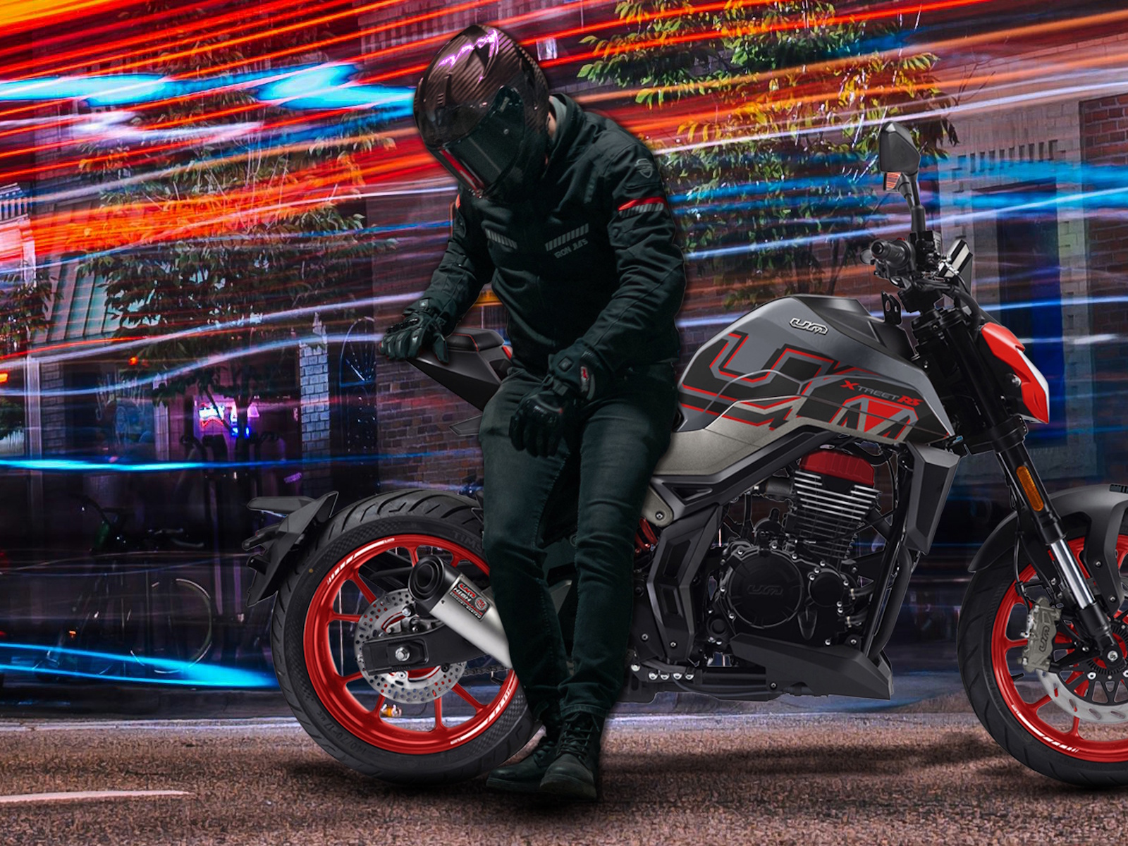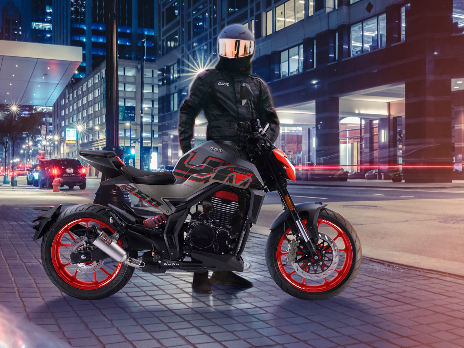 - Security: Safety is never optional; it's part of UM's DNA, especially on our Xtreet RS 250 4V. Equipped with disc brakes on both wheels, a suspension system tuned for excellent stability, and a frame that maximizes control in corners and under braking, this motorcycle lets you make every decision with confidence. Its high-range LED lighting system enhances visibility in any condition, ensuring the rider sees and is seen. Whether you're riding day or night, in dry or wet conditions, the Xtreet RS has your back every mile.
