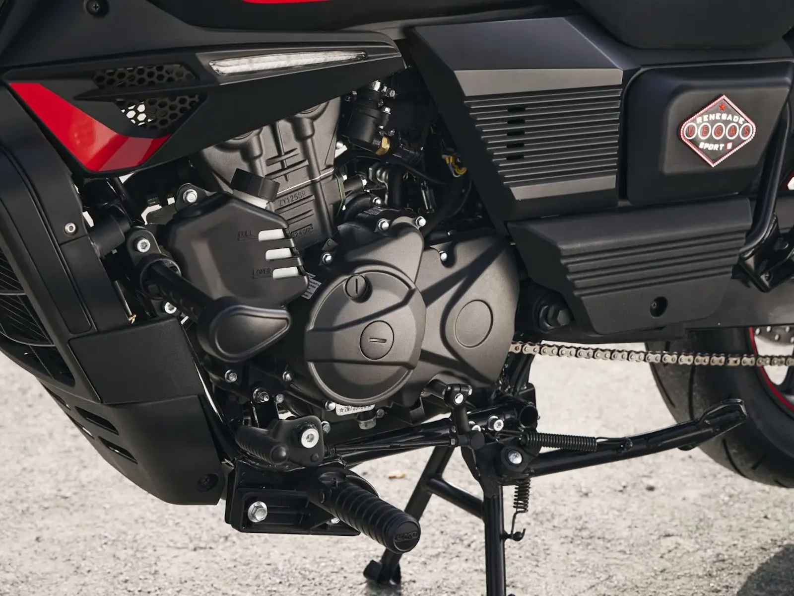 - Performance: Whether in its 125cc version or the more robust 300cc version, the Renegade Vegas is equipped with an engine designed to deliver immediate response and agile acceleration, ideal for conquering urban traffic effortlessly and dominating highways with fluidity and confidence. The 125cc engine offers the perfect balance between performance and efficiency, ideal for those seeking a stylish cruiser with manageable power for everyday use. Meanwhile, the 300cc version unleashes its full potential on the open road, delivering a more energetic and exciting riding experience with smooth yet powerful acceleration. Both configurations offer a stable, safe, and spirited ride, designed for riders who value performance as much as style. Because no matter the road, the Renegade Vegas always responds with attitude.
