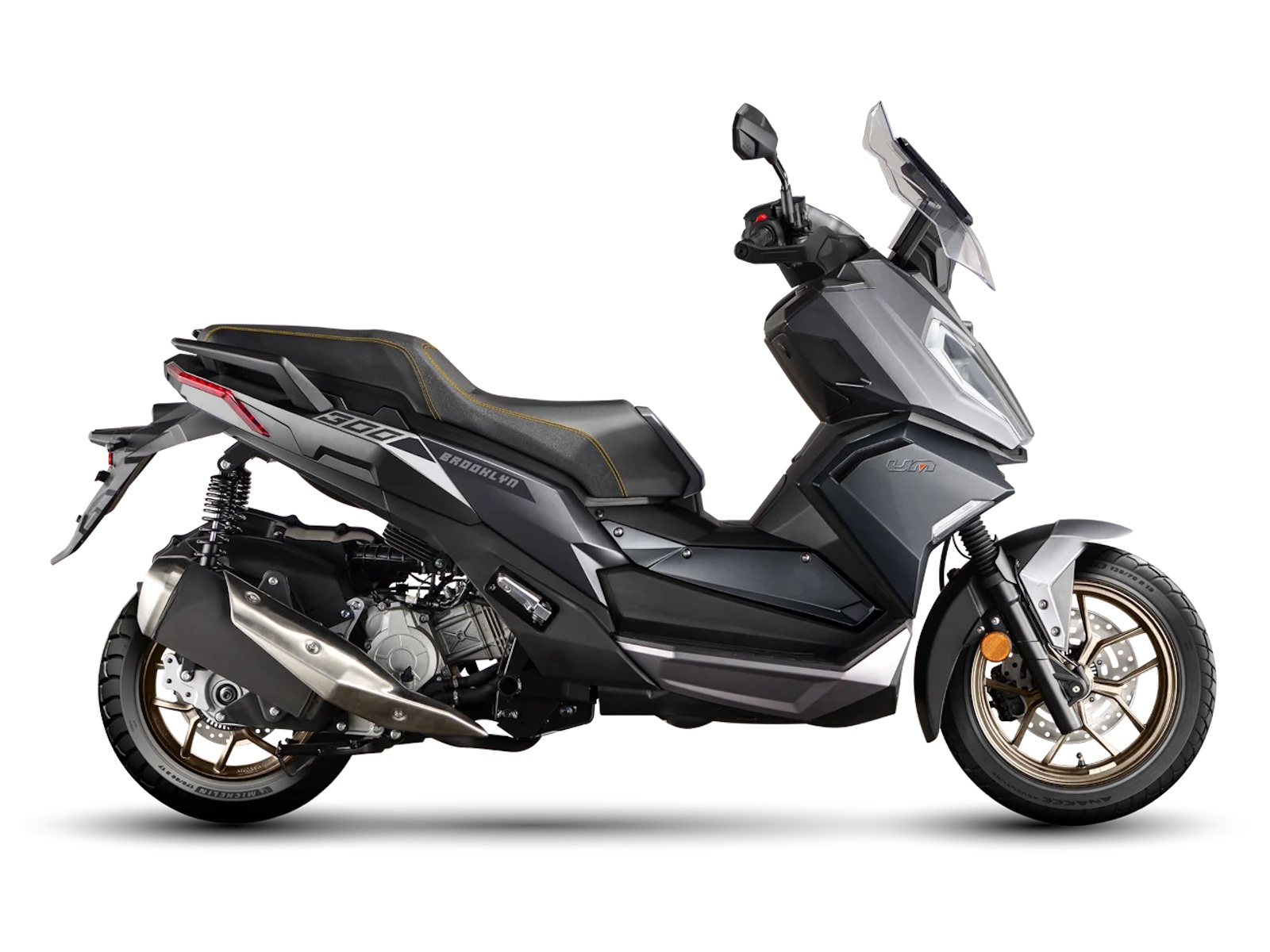 - Design: With a bold, cutting-edge, and distinctive design, the new Brooklyn 300 impresses with its angular lines, aggressive-looking LED headlights, and details that exude urban sophistication. A scooter designed to turn heads.