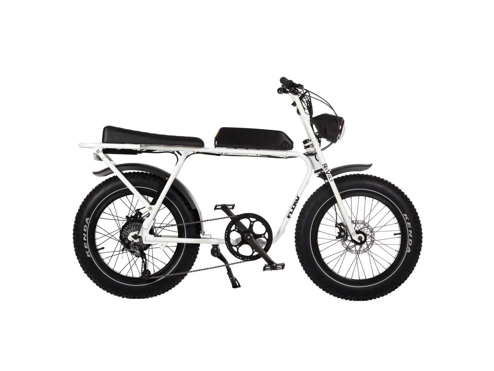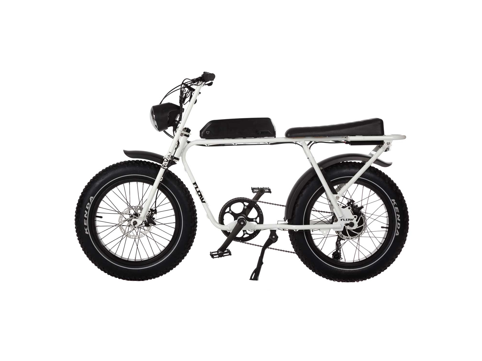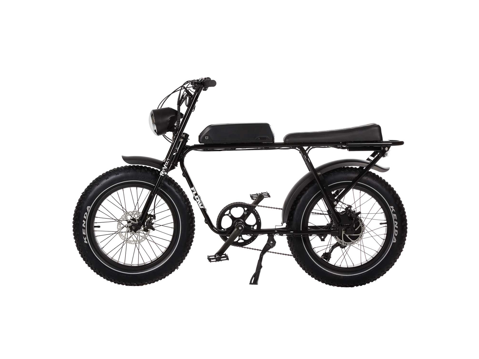 The all-new retro-style class 3 Flow ReVolt features a Bafang 500-watt rear drive motor and an LG 36-volt, 14-amp hour lithium-ion “gas tank-like” battery. The full color Bafang display panel features a high-tech speedometer, a USB plug, and is flat out more exciting than those old-fashioned black and white display panels. The high-quality Shimano Alivio M4000 gearset ensures smooth and accurate shifting between gears so that you never have to worry about your chain getting stuck. The ReVolution is also equipped with a left-side thumb throttle that quickly accelerates you to 20-mph without ever needing to pedal, and a high-end pedal assist system thanks to its Bafang torque sensor to get you up to speeds of 28-mph. And the 4” wide tires help you navigate through just about any type of terrain and provides cushion for going off-roading if your heart desires.